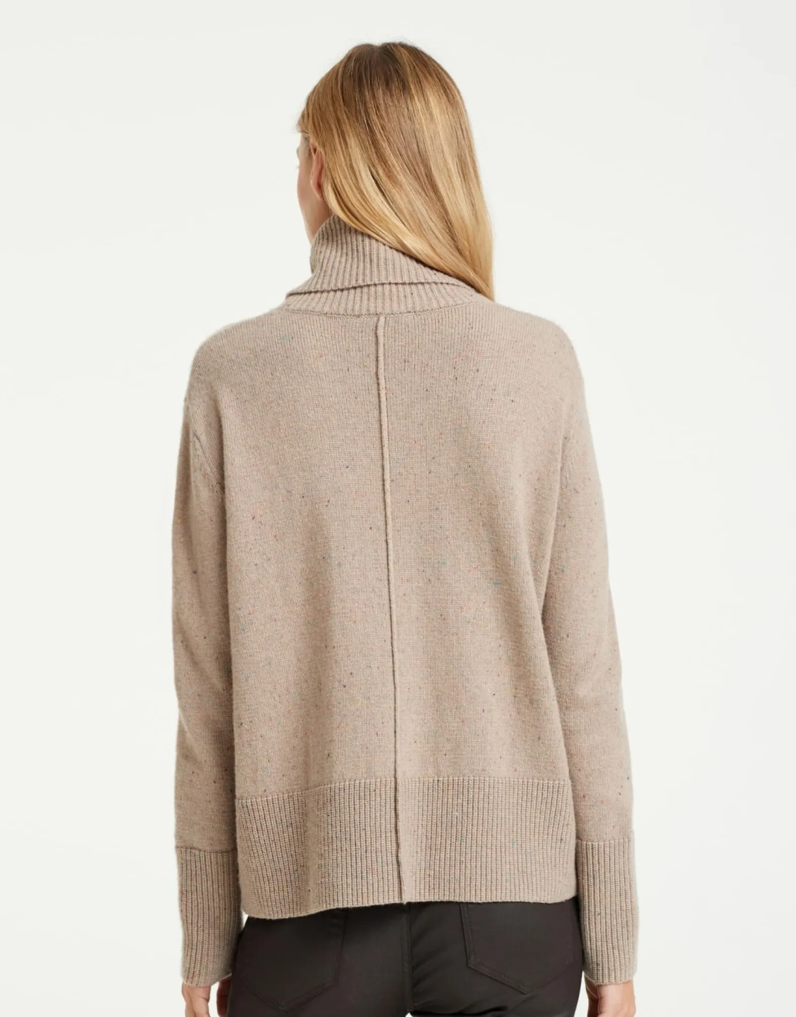 De Gebreide Pullover Van Een Gerecyclede Polyestermix Is Gemaakt Van Een Heel Bijzonder Garen: Kleurrijke Vezels Zorgen Voor Kleurrijke Punten. Een Brede Kraag Zorgt Voor Een Herfstachtige Look.