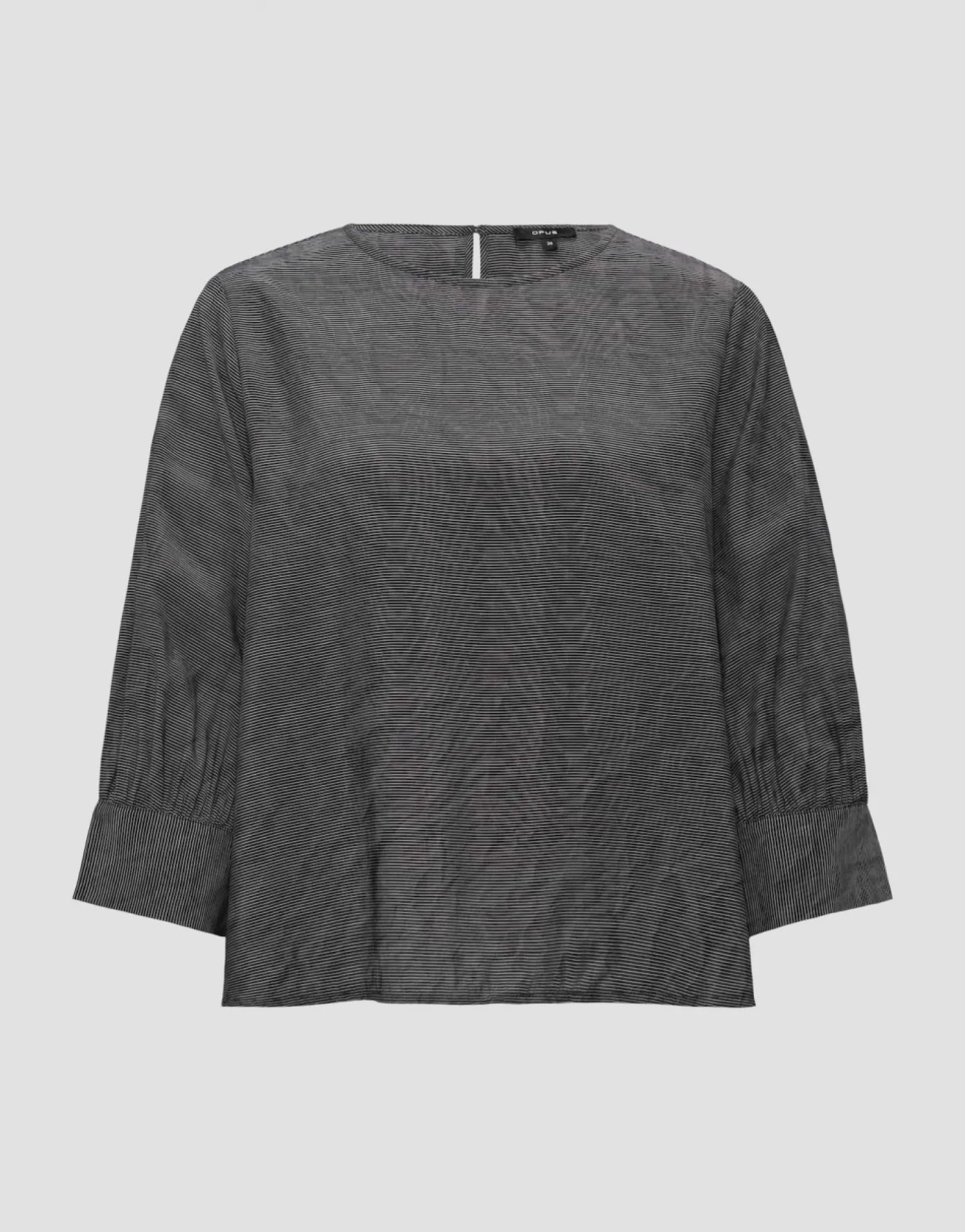 De Blouse Met Lange Mouwen Is Gemaakt Van Een Hoogwaardige Modalmix En Heeft Een Fijn Streepje Op Het Oppervlak. De Ruches In De Mouwen Geven De Blouse Een Speelse, Vrouwelijke Look.