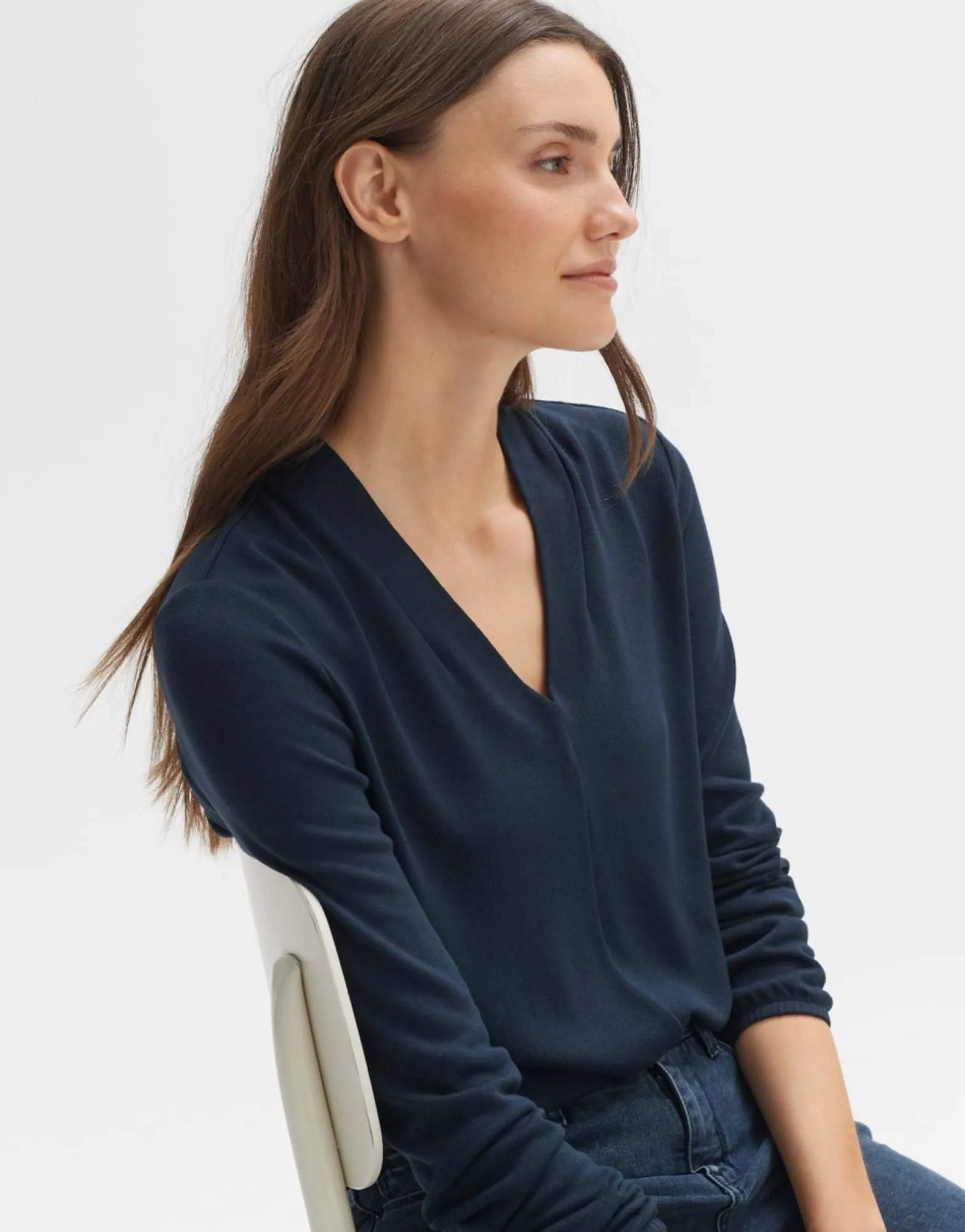 Het Shirt Met Lange Mouwen Van Een Hoogwaardige Ecovero™ Viscosemix Heeft Een Licht Geborstelde Jerseystof. De Diepe V-Hals En Elastische Tailleband Geven Het Shirt Een Vrouwelijke Touch.