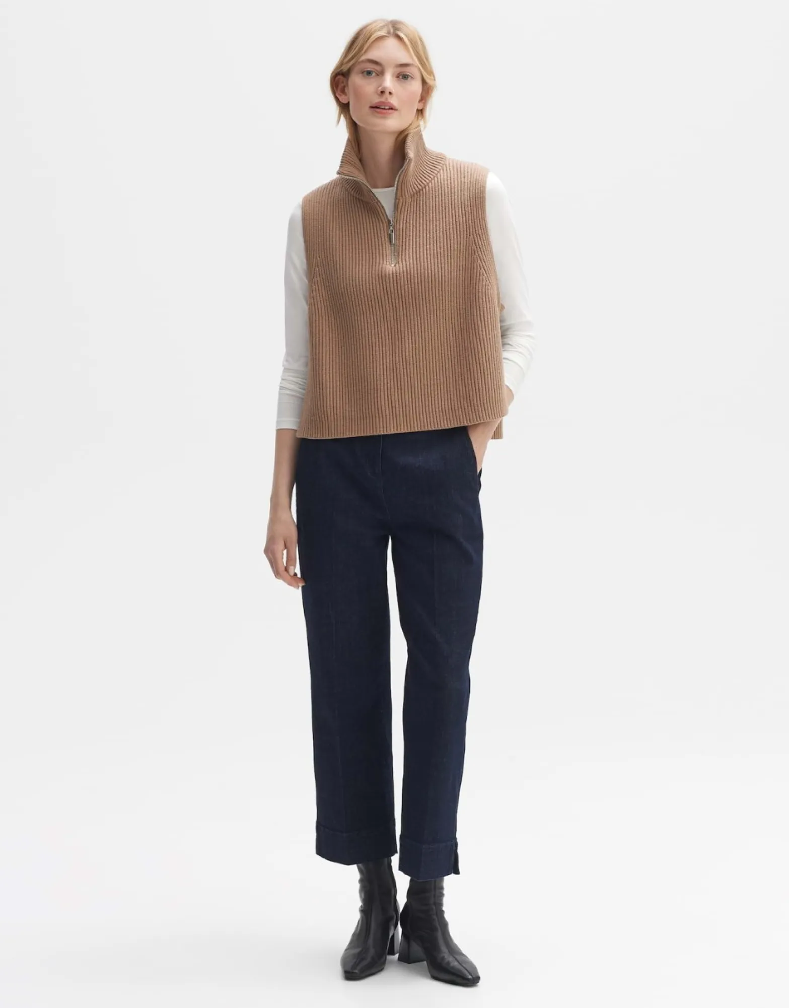 De Slipover Van Een Bci-Katoenmix Houdt Je Lekker Warm Met Zijn Grove Breisteek En Brede Troyer-Kraag. De Zijkant Is Open En Heeft Een Kleine Bar.