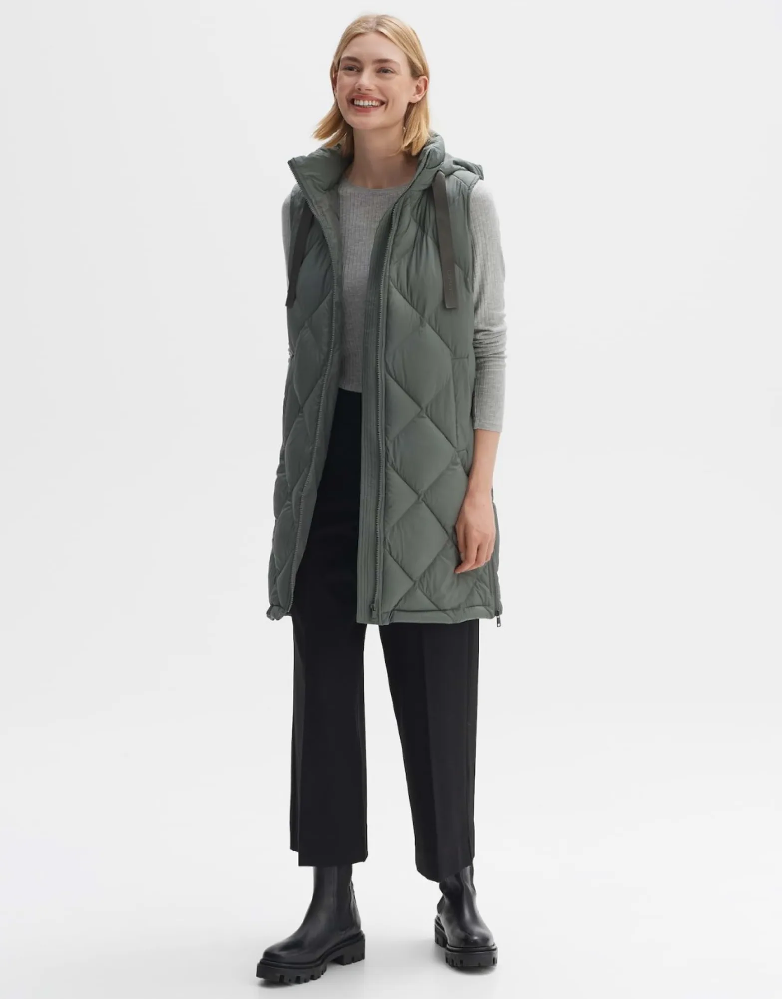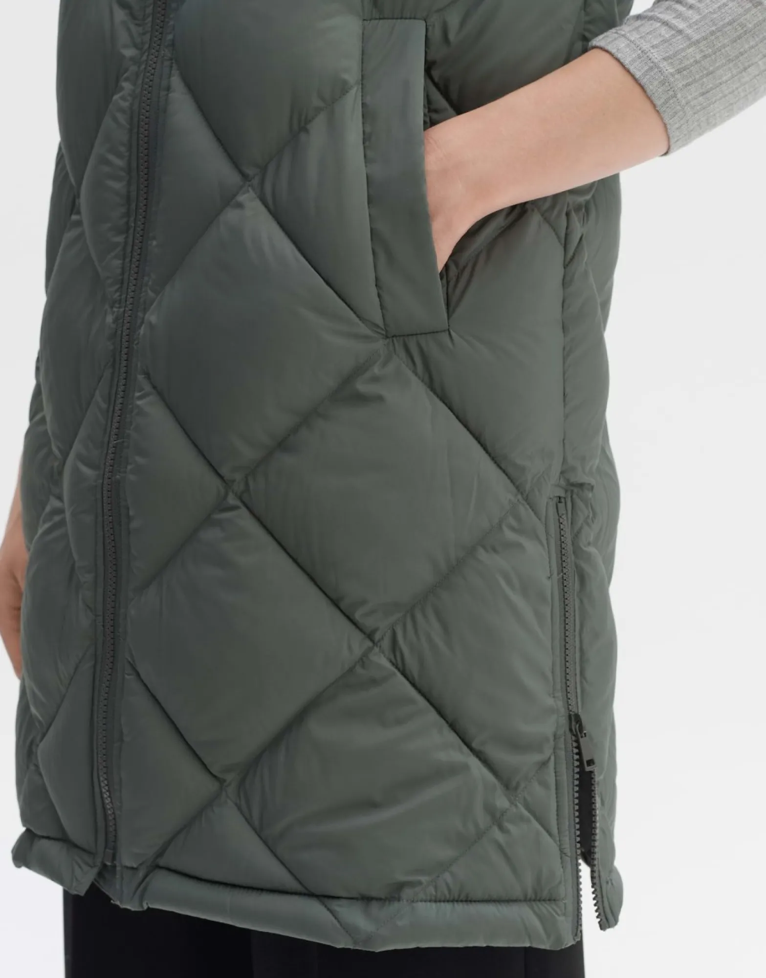 Het Lange Gilet Heeft Een Modern Ruitjespatroon. Het Lange Silhouet Laat Het Patroon Mooi Uitkomen. De Gewatteerde Vulling Combineert Alle Voordelen Van Een Klassieke Donsvulling Zonder Echt Dons Te Bevatten: Het Is Waterafstotend, Winddicht, Verwar…