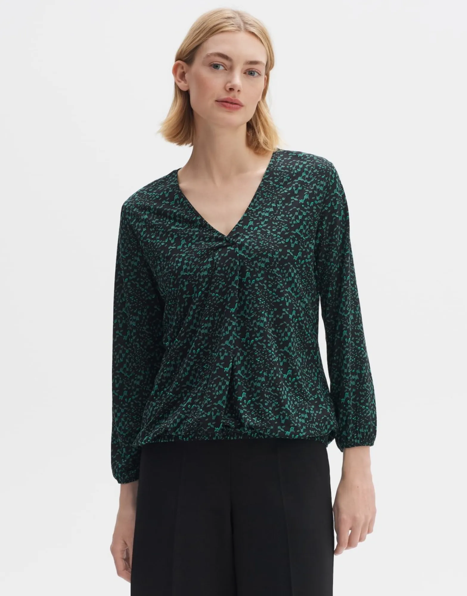 Dit Shirt Met Lange Mouwen Is Gemaakt Van Vloeiende Viscose En Heeft Een Vrouwelijke, Speelse All-Over Print. Verfijnde Details Zoals De Ingelegde Plooi Aan De Voorkant Of De Elastische Zoom En Mouwen Geven Het Shirt Net Dat Beetje Extra.