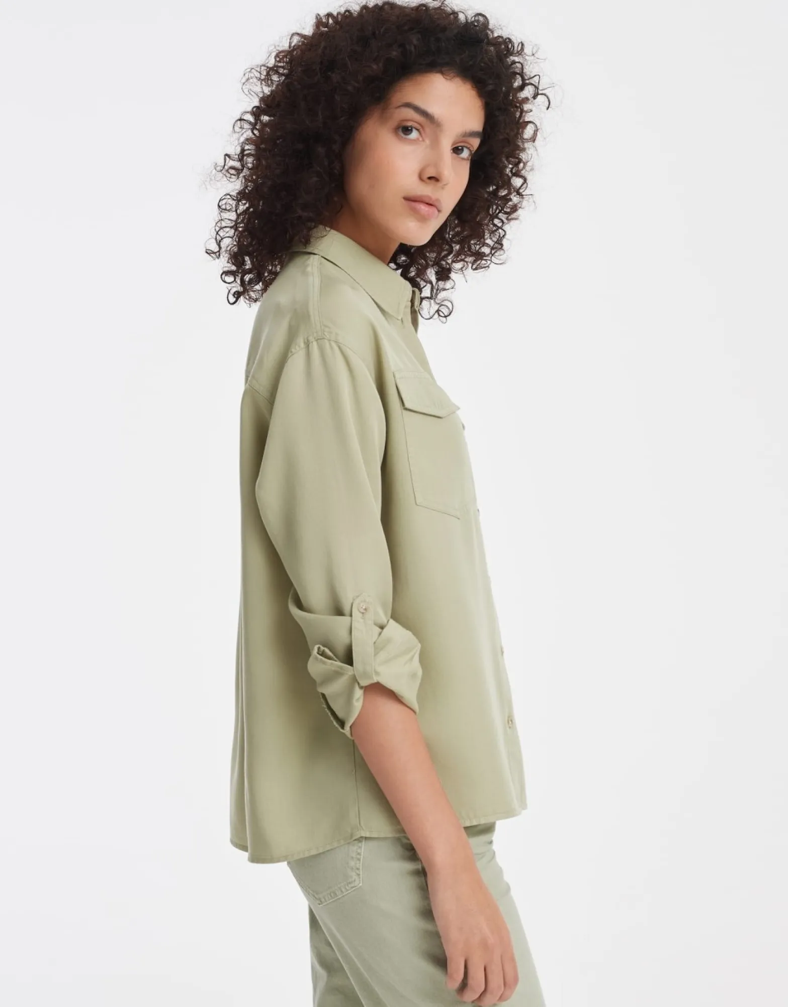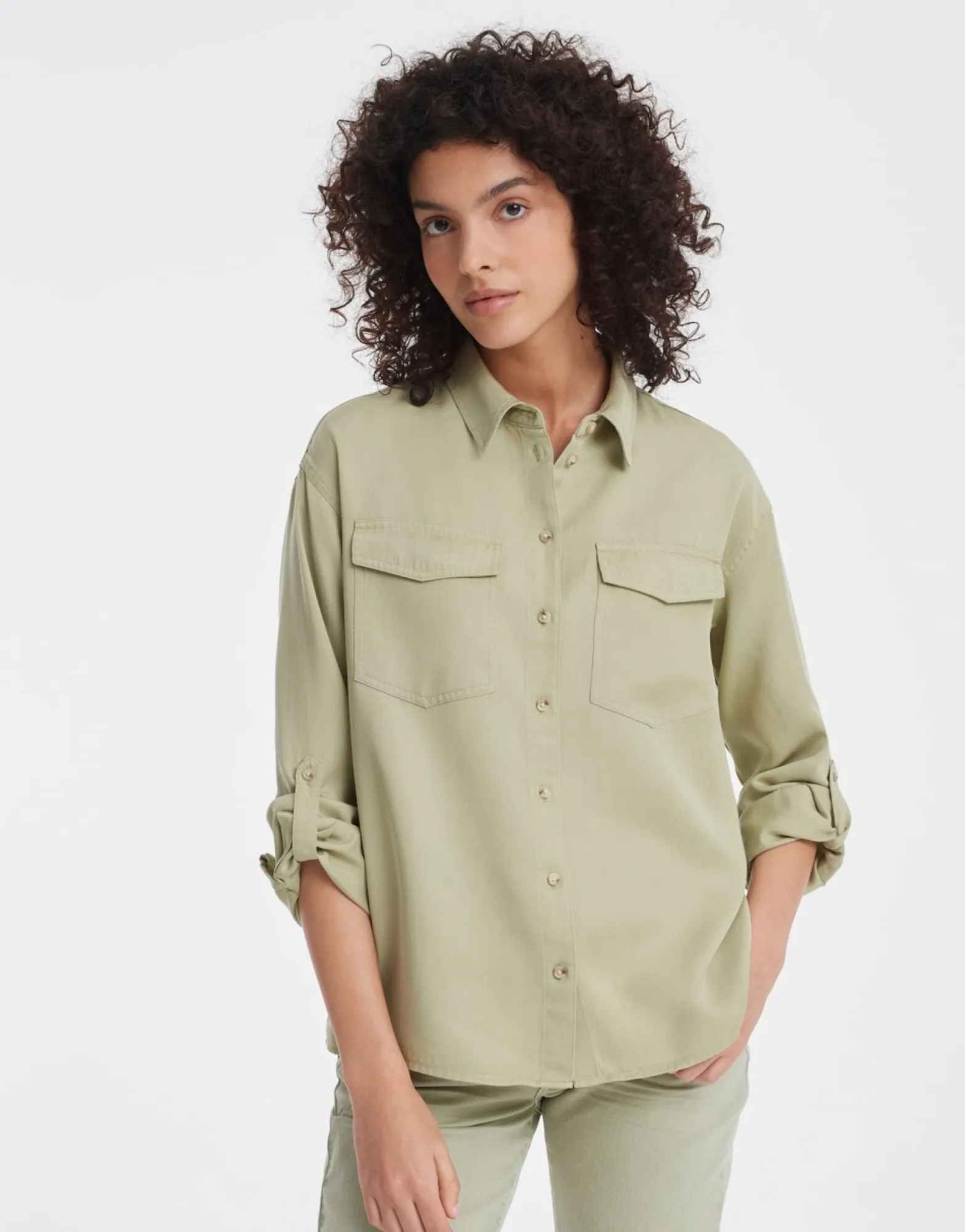 De Overhemdblouse Van Zacht Lyocell Volgt De Stijl Van De Utility-Trend. Grote Klepzakken Aan De Voorkant En Kleine Hoornen Knopen Geven De Blouse De Bijzondere Look. De Losse Pasvorm Wordt Door Een Plooi In De Rug Versterkt.