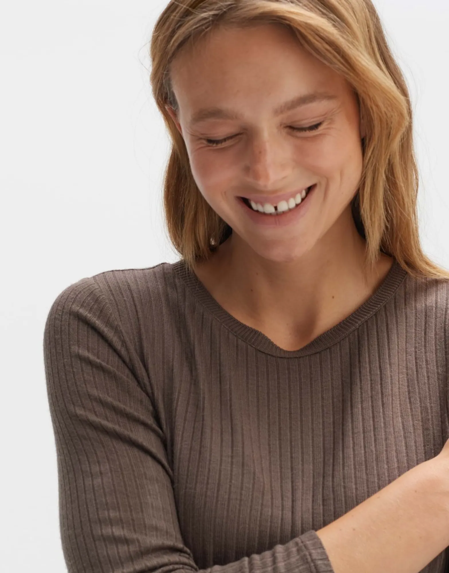 Het Shirt Met Lange Mouwen, Gemaakt Van Een Hoogwaardige Ecovero™ Viscosemix, Omarmt Het Lichaam Comfortabel Dankzij De Zachte En Elastische Rib. De Basic Is Een Perfecte Onderlaag En Is Geweldig Om In Laagjes Te Dragen.