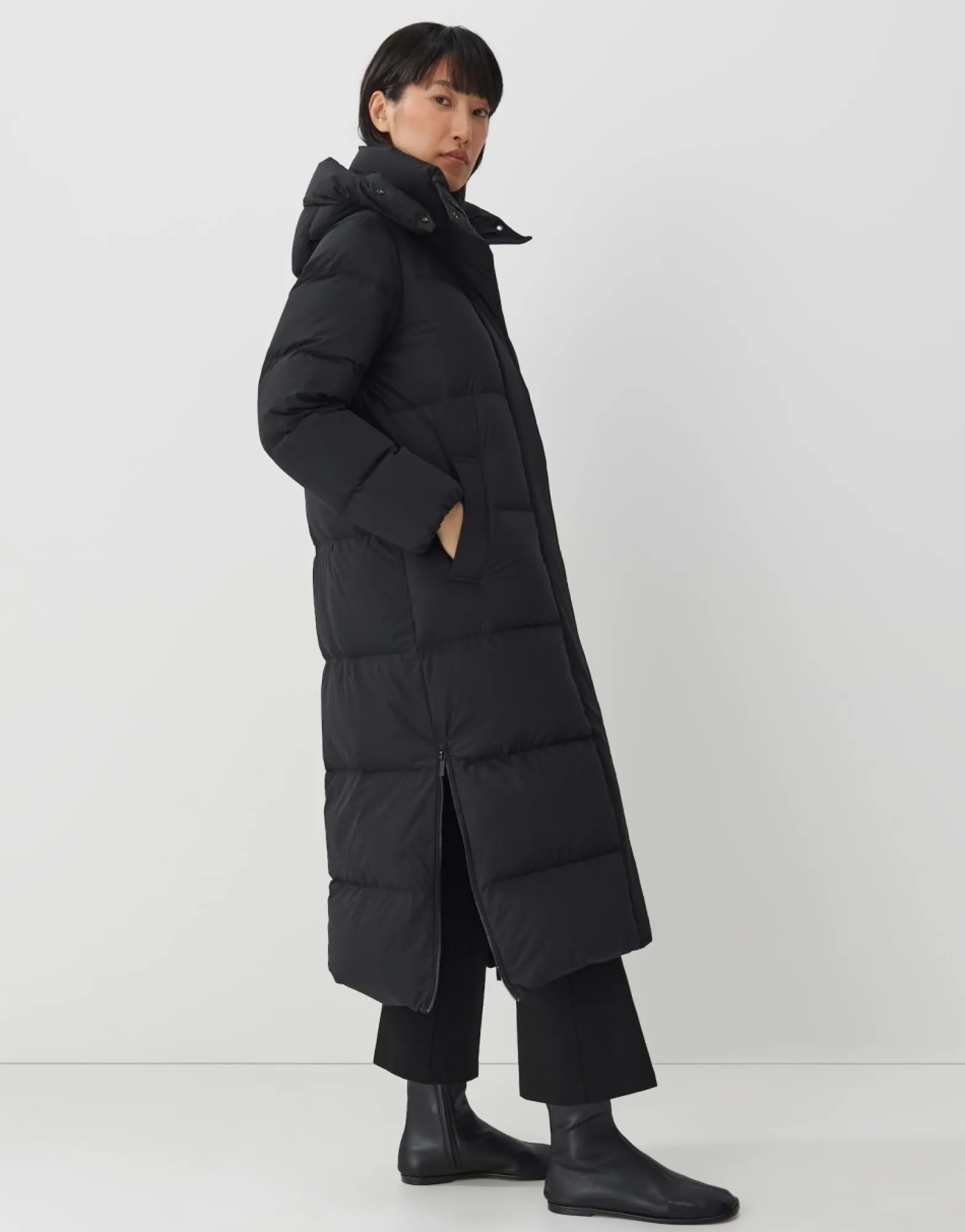 De Donsjas Is Een Must-Have Voor Het Koude Seizoen Met Zijn Lange Silhouet En Volumineuze Kamers Gevuld Met Gerecycled Dons. Lange Ritsen Aan De Zijkanten En De Tweewegrits Aan De Voorkant Zorgen Voor Flexibiliteit En Mobiliteit.