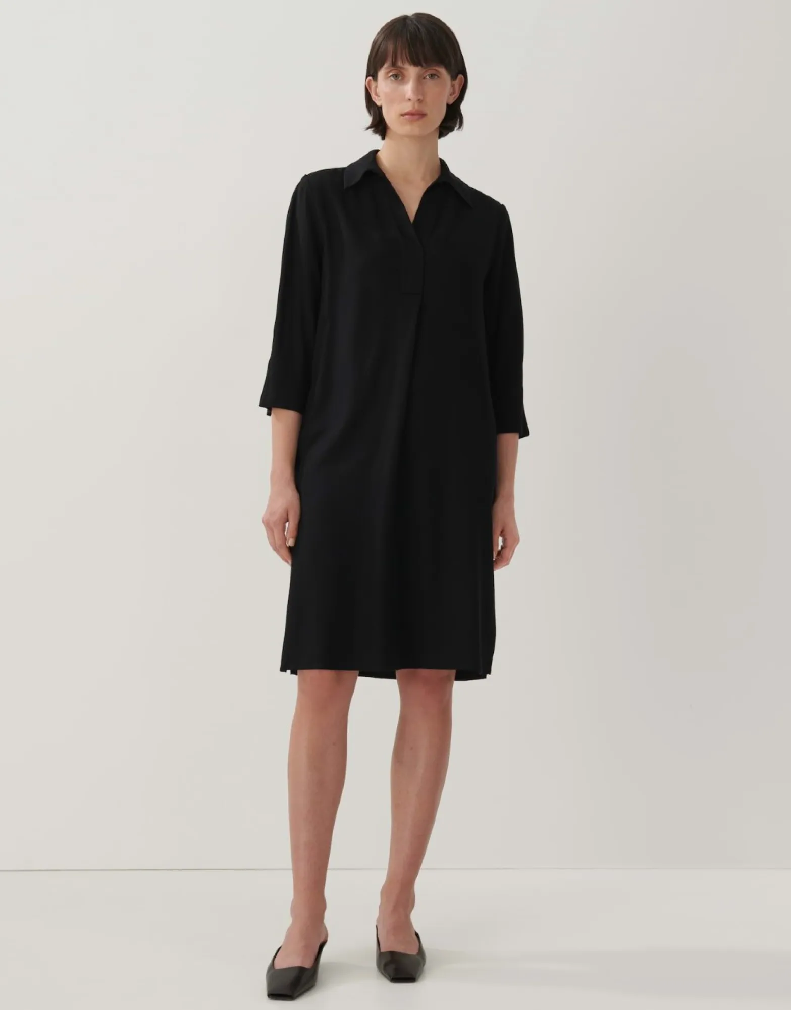 De Overhemdjurk Van Ecovero™ Viscose Is Op Knielengte Gesneden En Heeft Een Klassieke Overhemdkraag. De Speciale Highlight Op De Rug: Een Breed Rimpeldetail Accentueert Het Silhouet Op Een Nog Vrouwelijkere Manier.