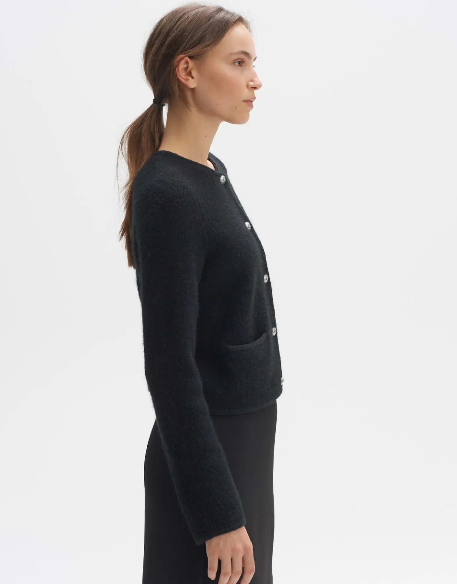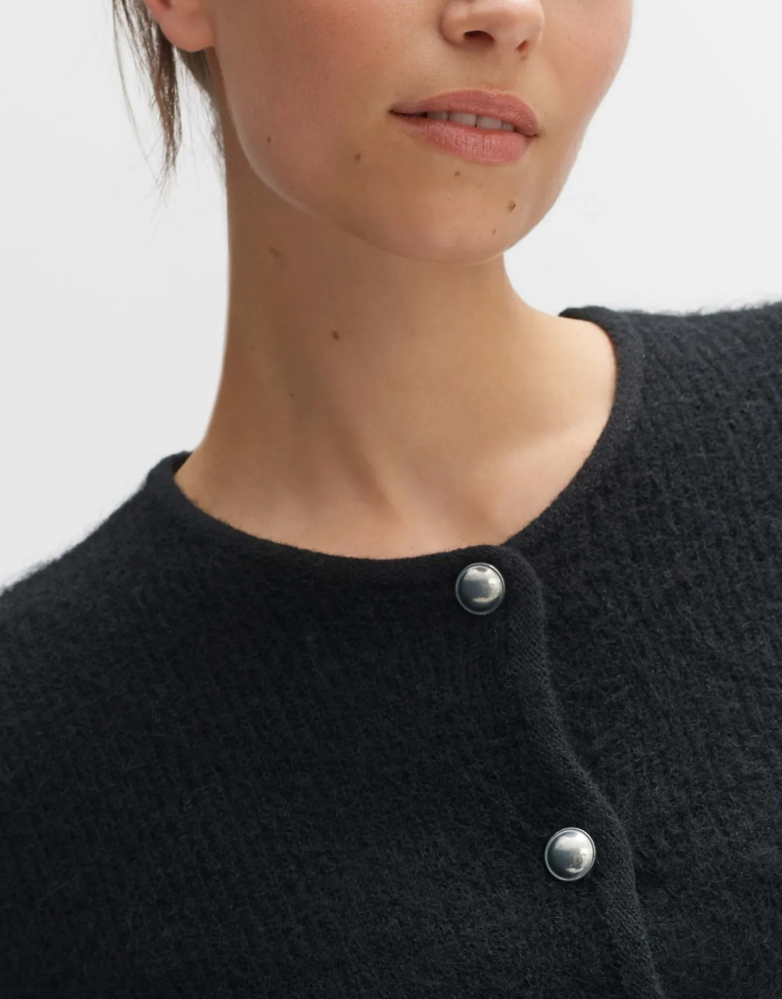 Het Vest Met Harig Oppervlak Nodigt Je Uit Om Lekker Tegenaan Te Kruipen En Je Goed Te Voelen Op Koele Dagen. De Ronde Halslijn En De Contrasterende Metalen Knopen Maken De Vrouwelijke Look Van Het Vest Compleet.