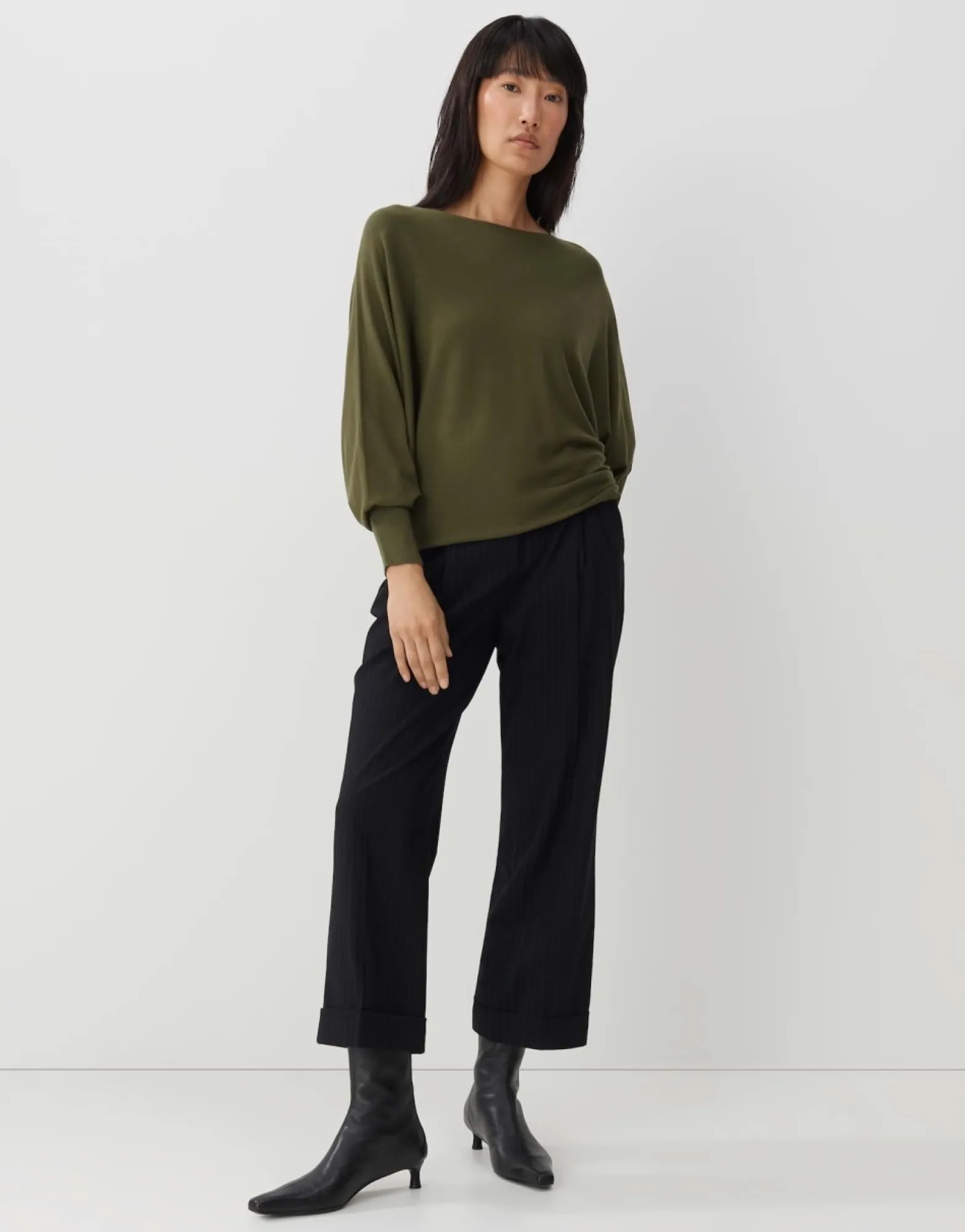 De Gebreide Trui Van Een Extreem Zachte Viscosemix Krijgt Een Modern O-Vormig Silhouet Door De Vleermuismouwen. De Manchetten Maken De Trui Af Met Smalle Ribboorden.