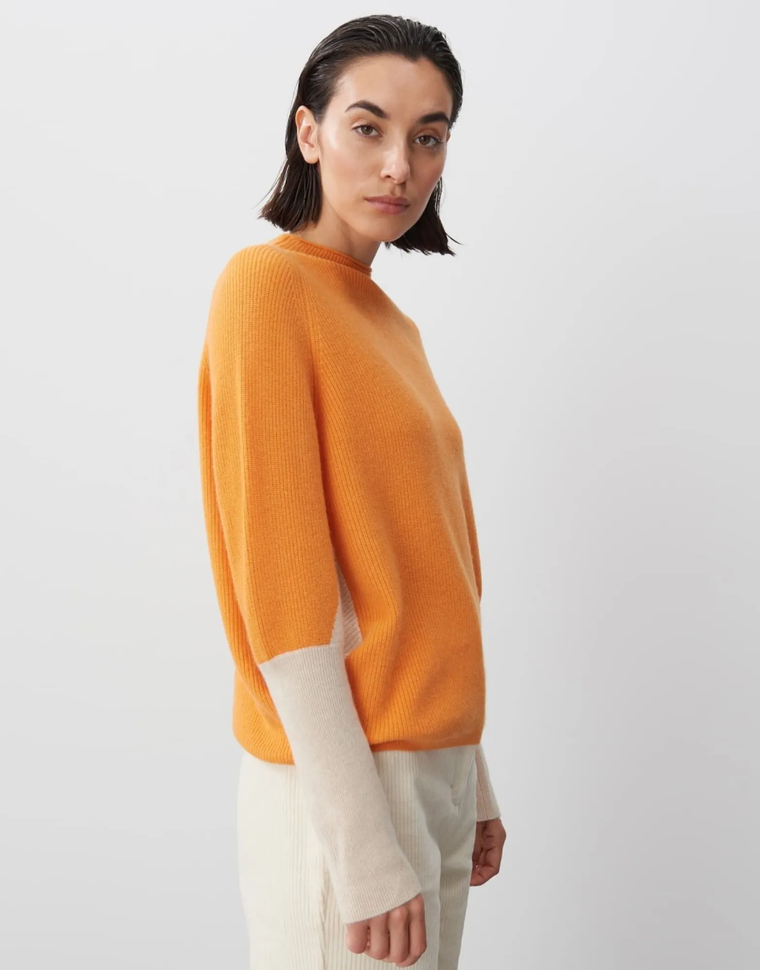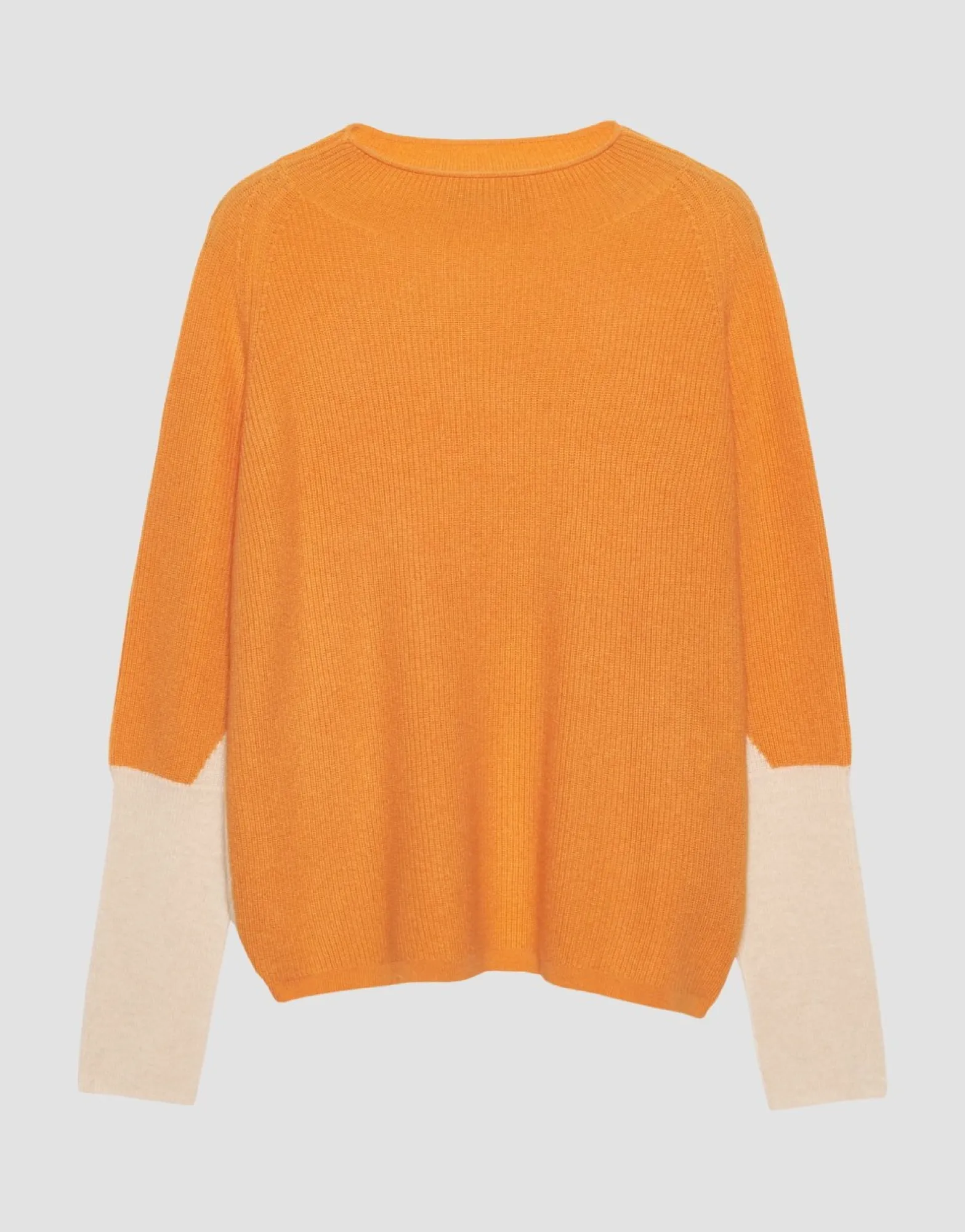 De Gebreide Trui In Een Zachte Kasjmiermix Speelt Een Geweldige Kleurblokkering Over Een Moderne O-Vorm. De Kleine Opstaande Kraag Is Bijzonder Flatterend En Rondt De Trui Elegant Af.
