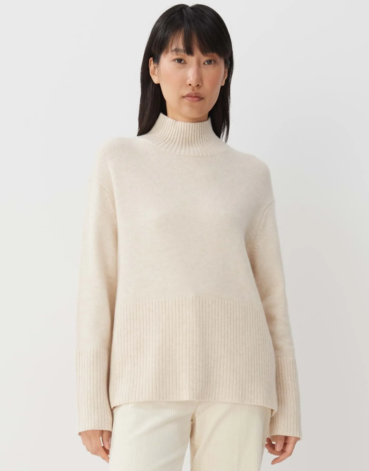 De Gebreide Trui Van Een Zachte Wolmix Overtuigt Met Een Pure Look Die Verrast Met Discrete Details. De Zomen En Kraag Hebben Bijvoorbeeld Een Lange Rib En De Rug Heeft Een Geraffineerde Split.