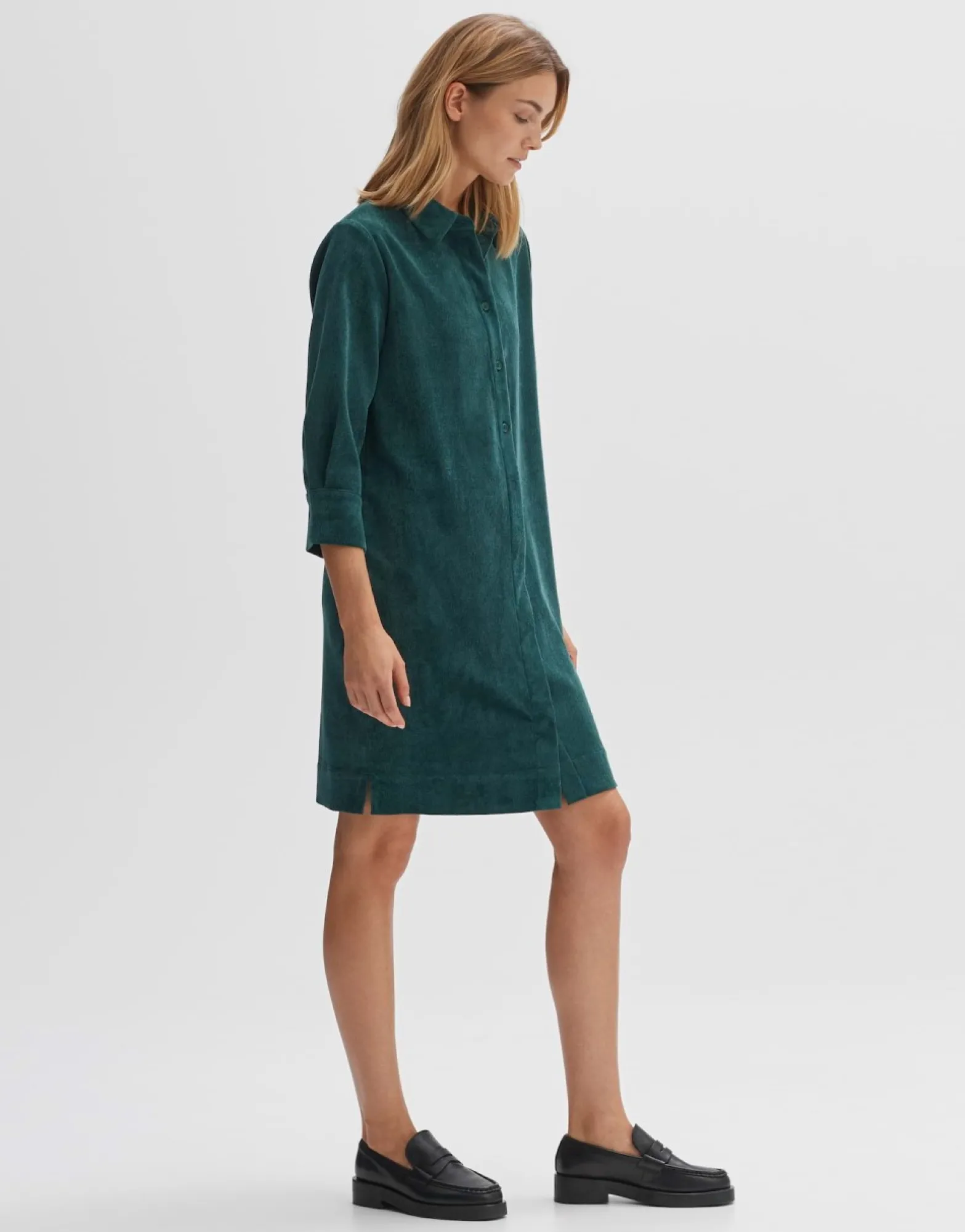 Deze Jurk Is Gemaakt Van Een Gerecyclede Polyestermix Met Fijn Babycorduroy Op Een Klassiek Overhemd-Blousesilhouet. De Bovenste, Zichtbare Knoopsluiting Gaat Over In Een Verborgen Knoopsluiting In Het Midden.