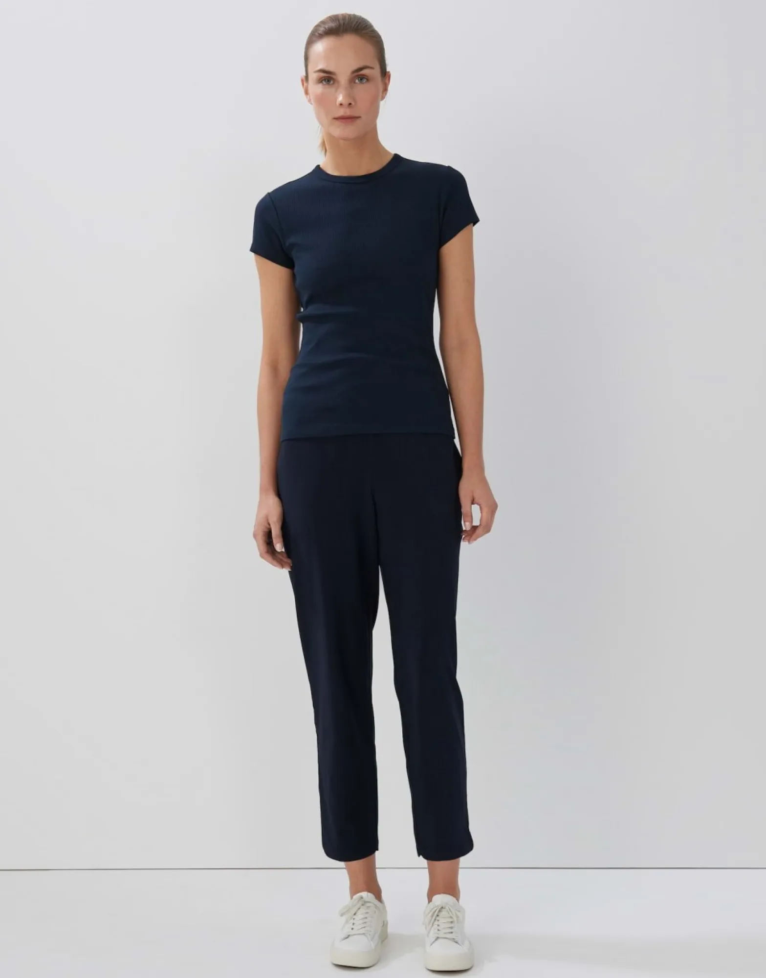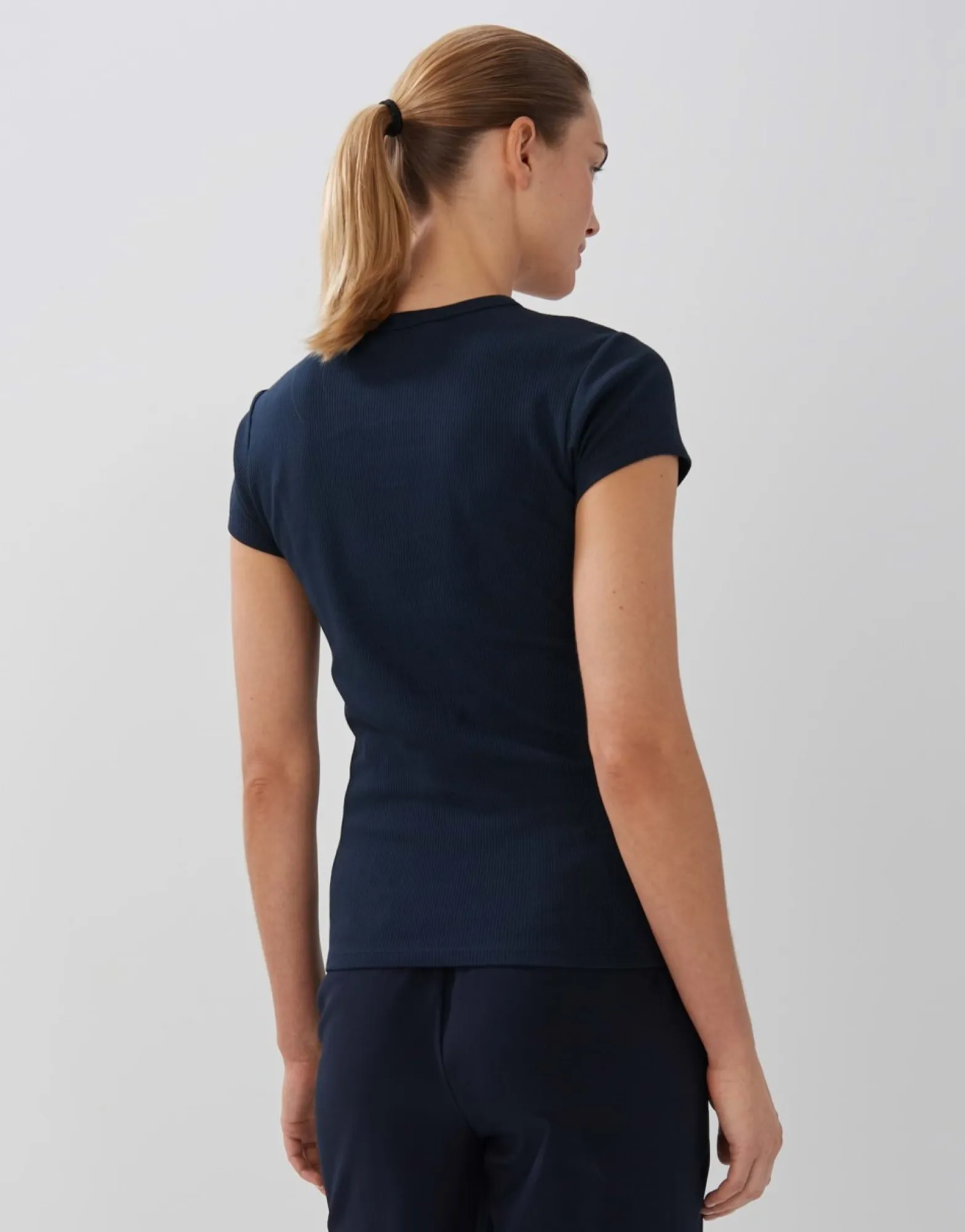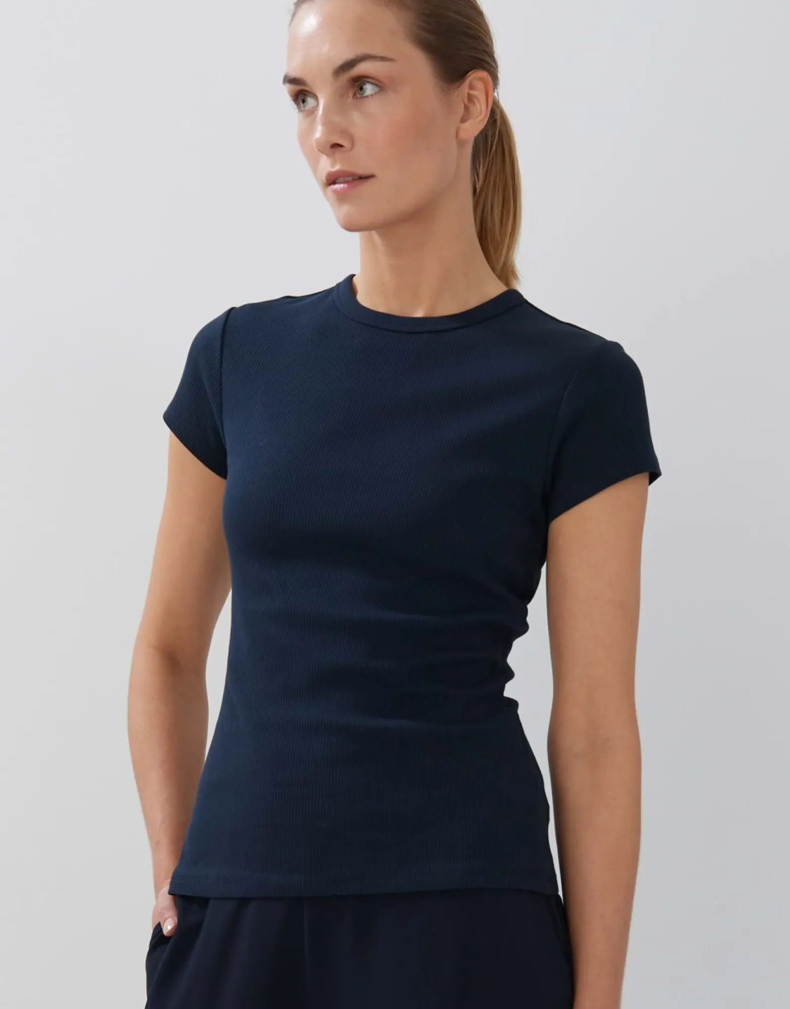 Het Shirt Van Bci-Katoenmix Overtuigt Met Een Eenvoudige Look En Fijne Ribboorden. De Aansluitende Vorm Zorgt Voor Een Vrouwelijke Look.