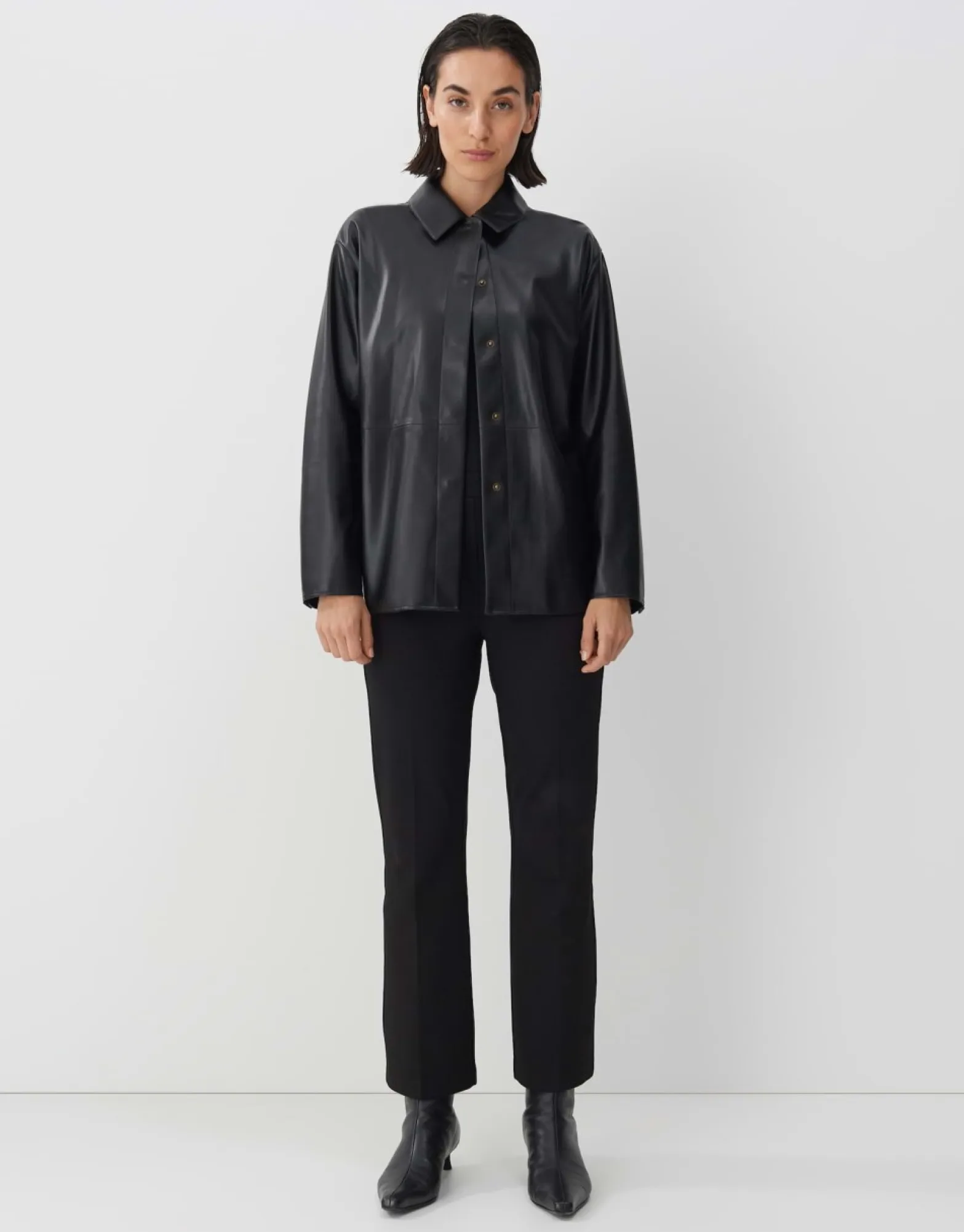 Het Overhemd In Coole Lederlook Is Gesneden In Een Casual Oversized Silhouet. De Deelnaden Geven De Overhemdblouse Een Authentieke Lederlook.