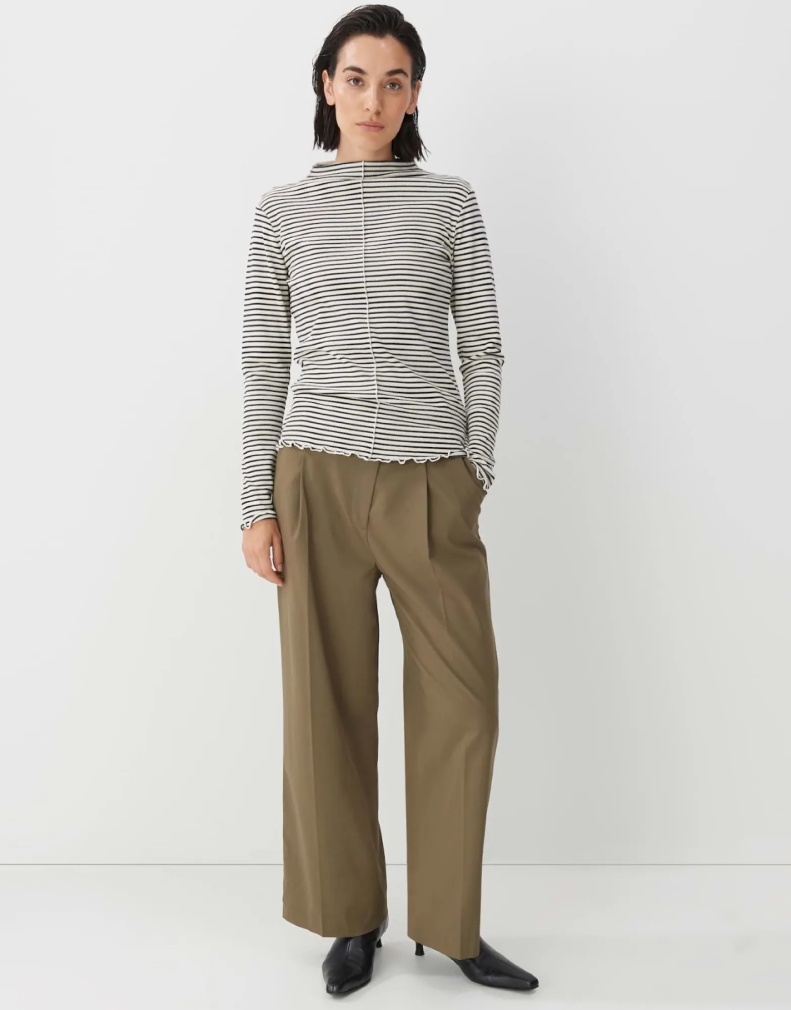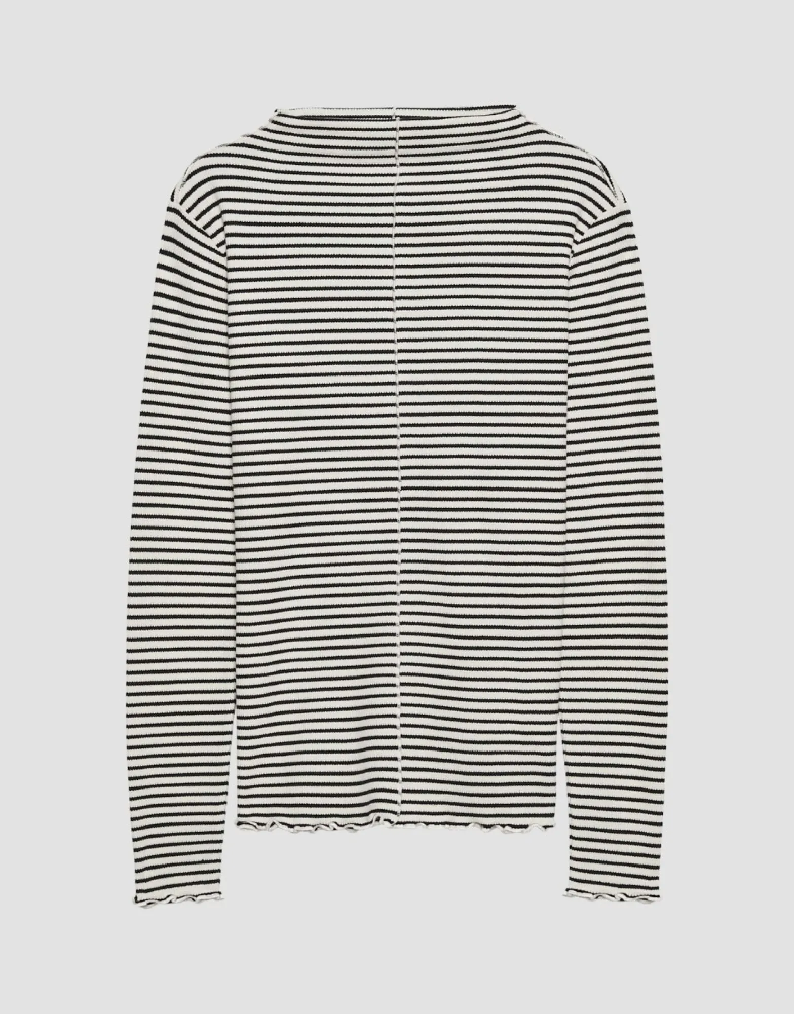Dit Shirt Met Lange Mouwen Is Gemaakt Van Een Zachte Viscosemix En Combineert Een Fijne Rib Met Een Al Even Fijn Streeppatroon. Het Slanke Silhouet Is Afgewerkt Met Een Kleine Opstaande Kraag En Is Ideaal Om In Laagjes Te Dragen.