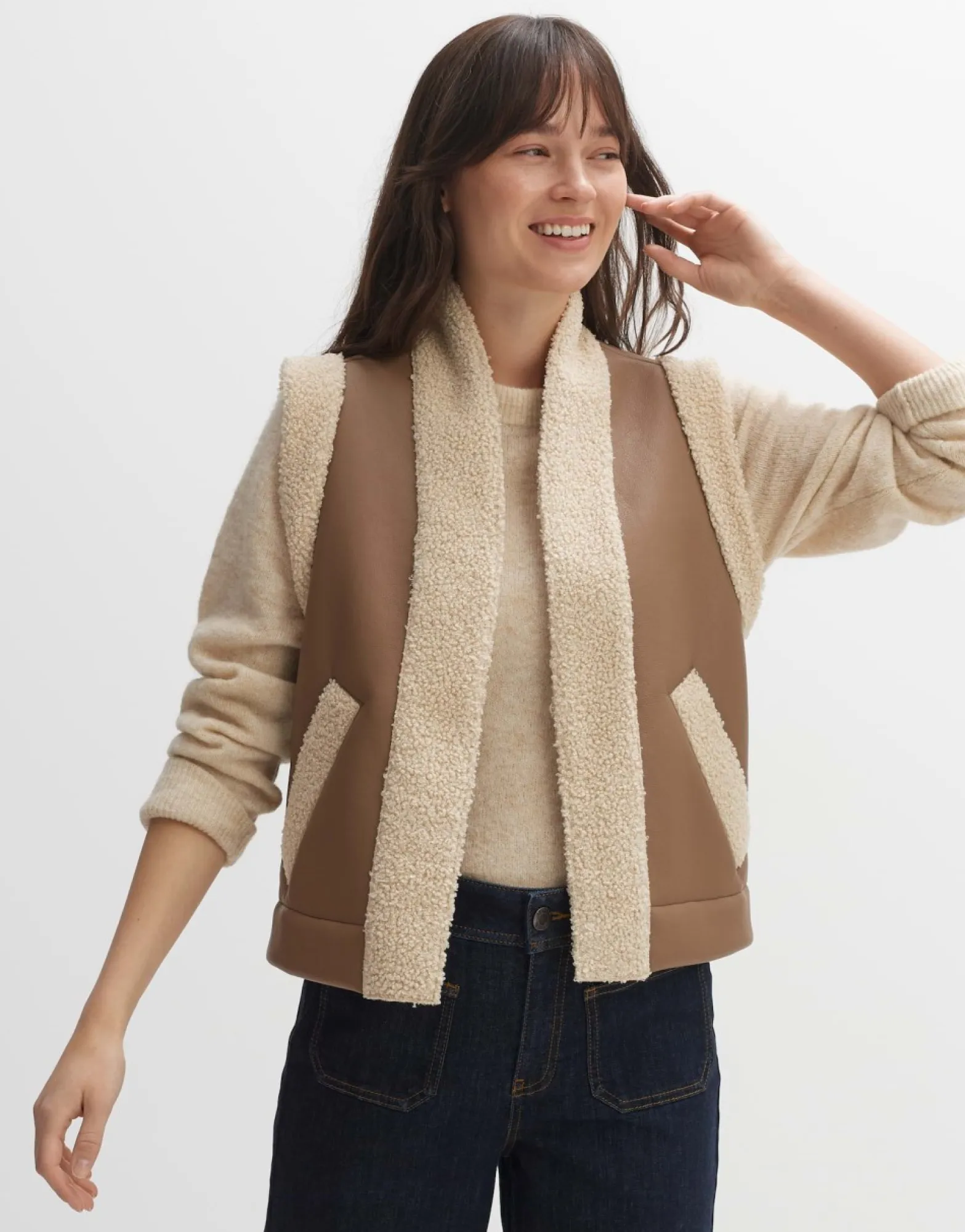 Het Gilet In Coole Lederlook Is Volledig Voorzien Van Pluizig Teddybont Aan De Binnenkant En Creeert Een Casual Retrolook. Dankzij De Relaxte Pasvorm Kan Het Gilet In Laagjes Worden Gedragen En Is Het Een Trendy Statement Item Voor Binnen En Buiten.