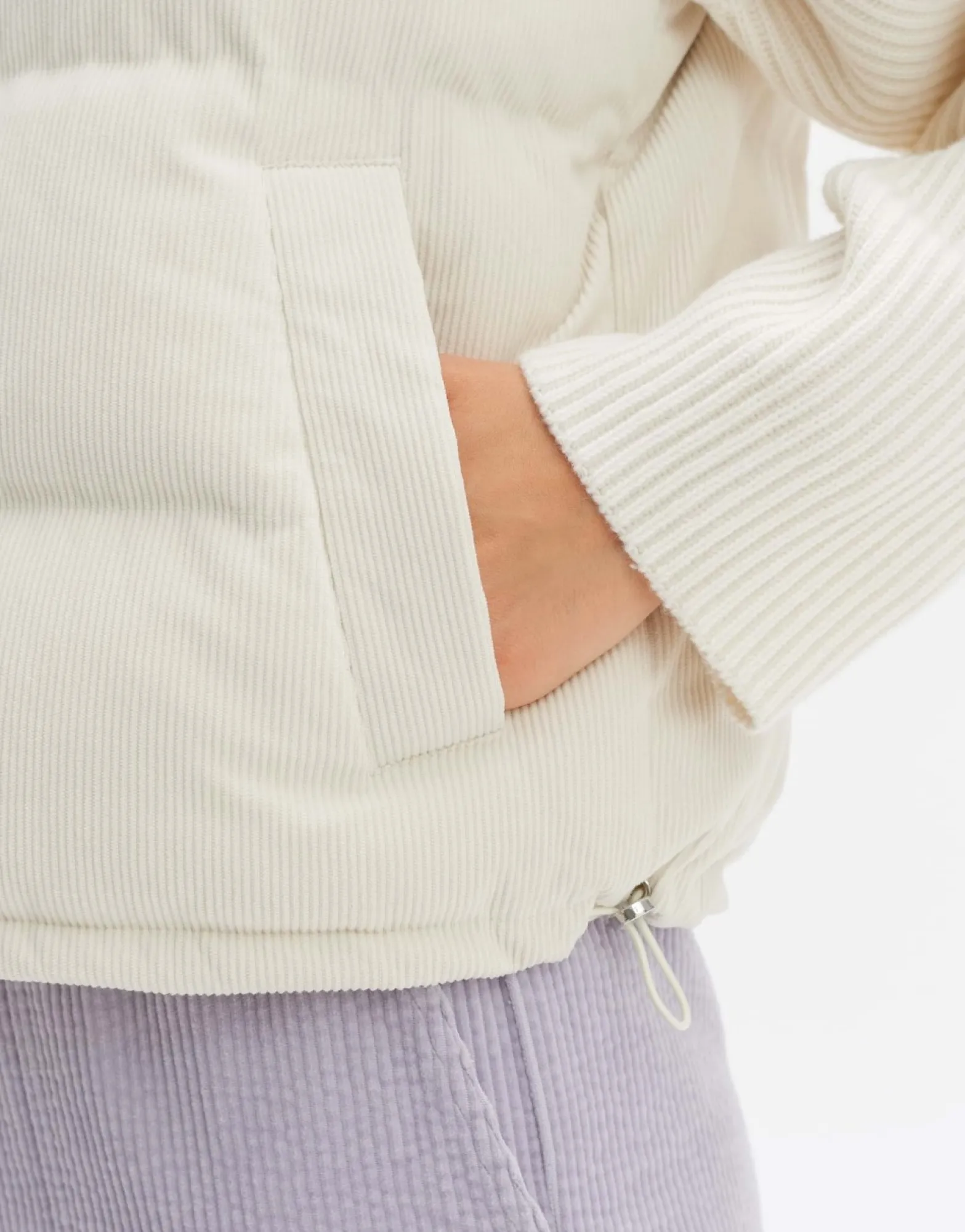 Het Gilet Van Gerecycled Polyamide Heeft Een Zachte Corduroy Afwerking. De Gewatteerde Vulling Combineert Alle Voordelen Van Een Klassieke Donsvulling Zonder Echt Dons Te Bevatten: Het Is Waterafstotend, Winddicht, Verwarmend En Lichtgewicht.