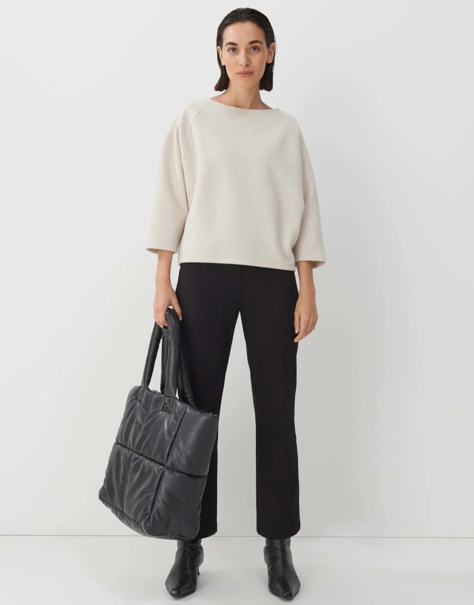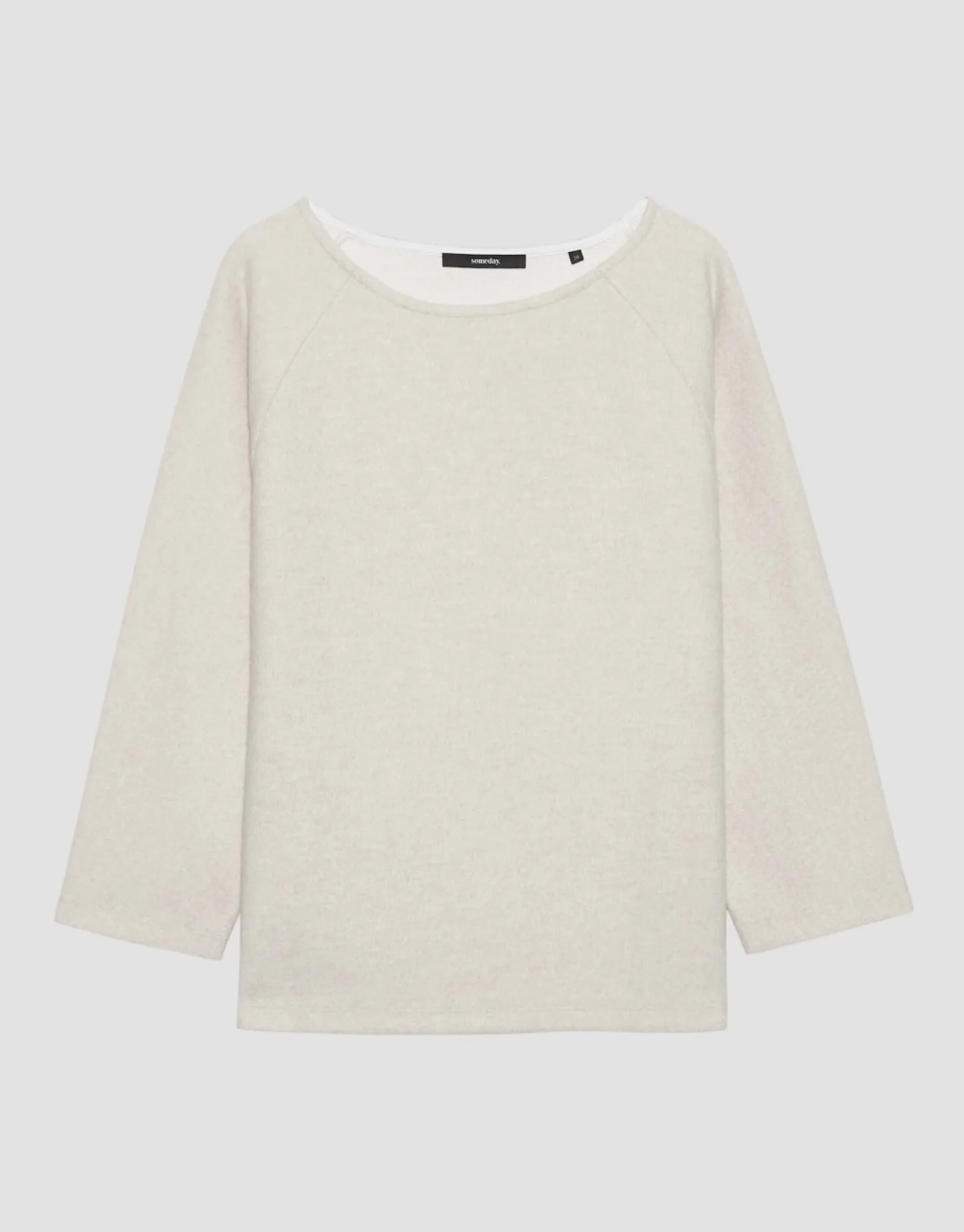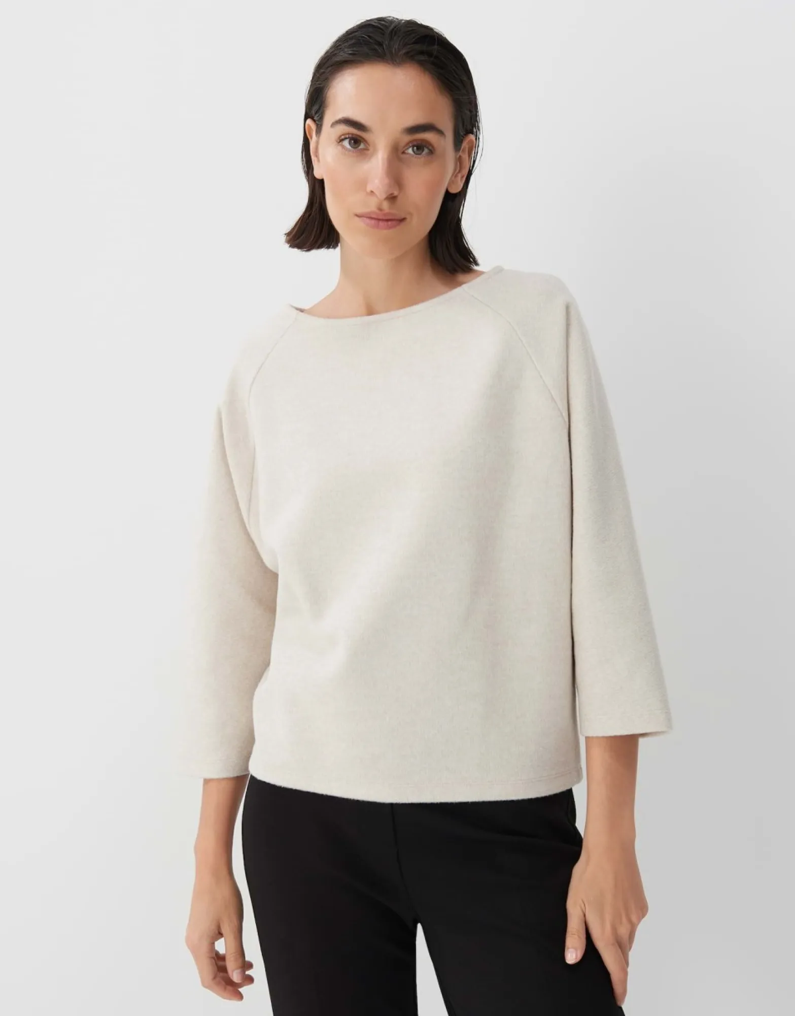 De Trui Is Gemaakt Van Een Viscosemix En Heeft Door Het Geborstelde Oppervlak Een Knus Flanellen Karakter. De Losse Pasvorm Combineert Een Raglanmouw Met Een Verkorte Vleermuismouw.