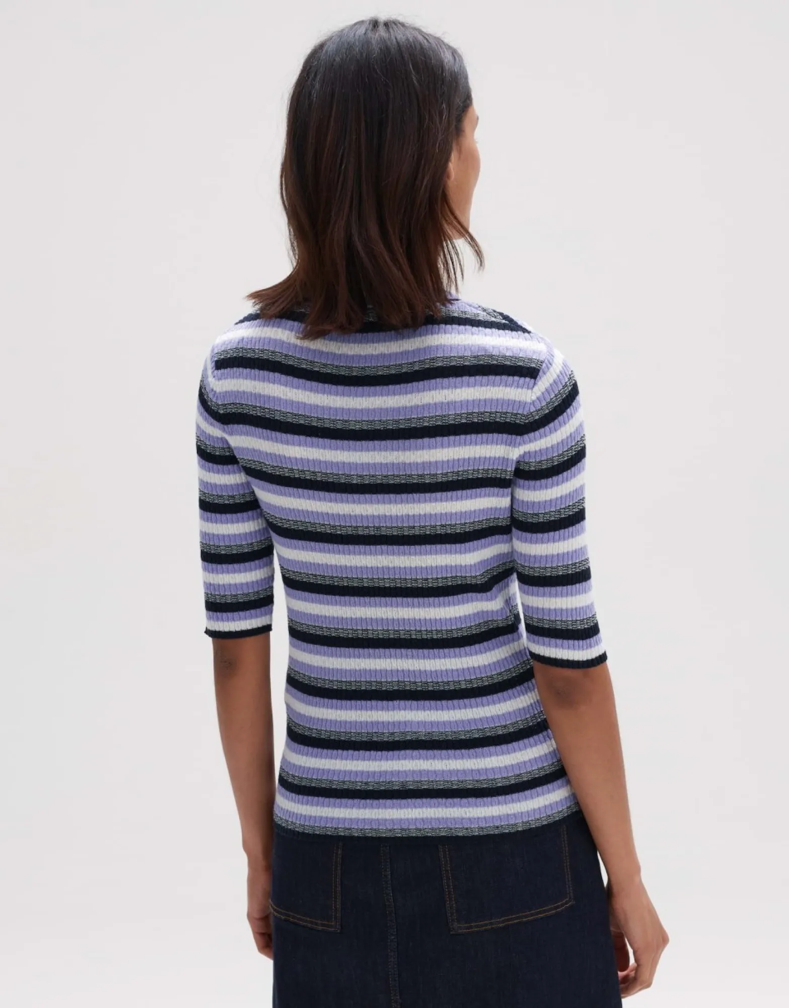 Het Gebreide Shirt Van Een Hoogwaardige Bci-Katoenmix Krijgt Een Modieuze Update Dankzij De Spannende Structuur In Het Garen En In De Breistijl. De Kleurcontrasterende Strepen Geven Het Breisel Een Vrouwelijke En Casual Uitstraling.