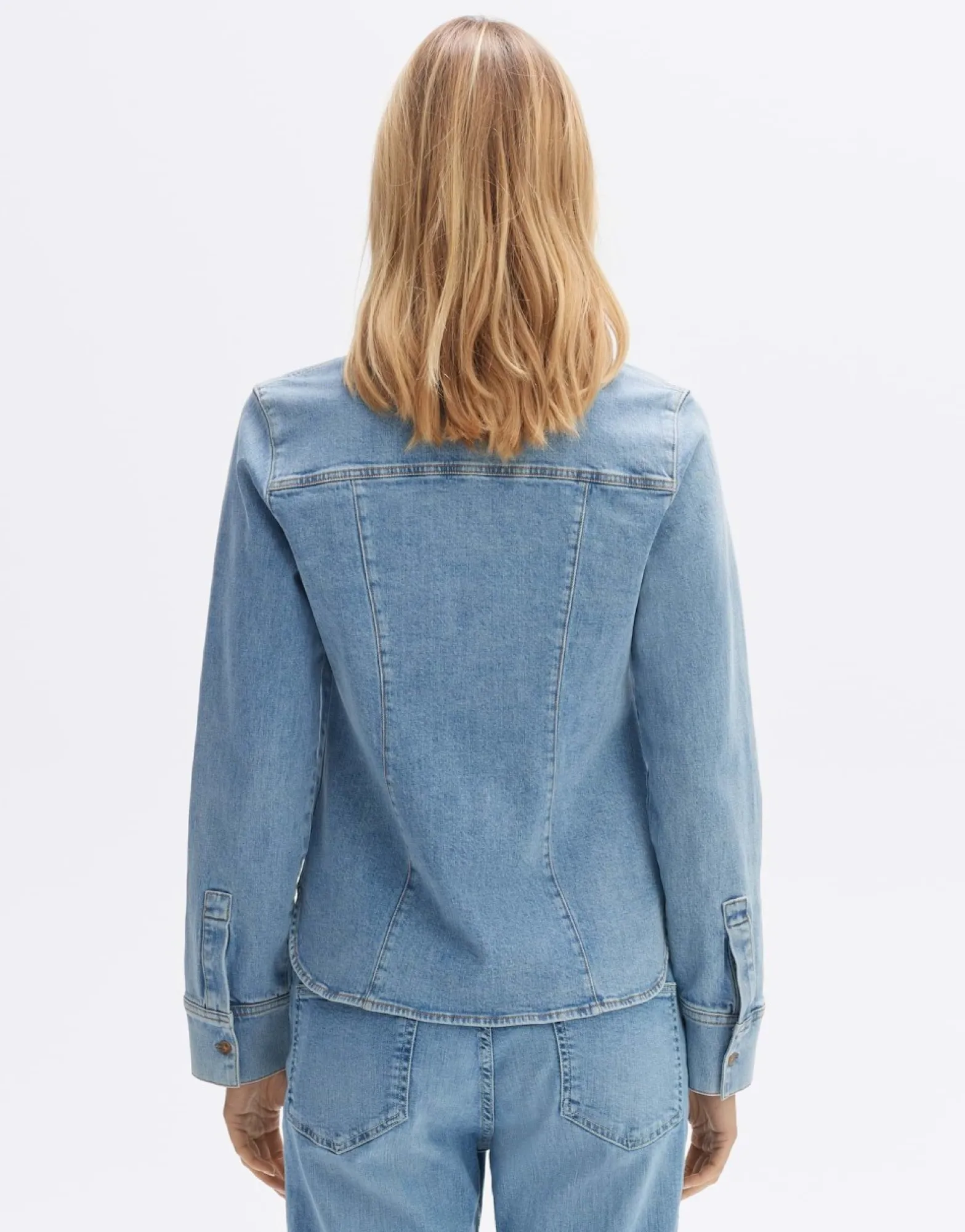 De Bci Cotton Denim Blouse Is Gemaakt In Een Slank, Getailleerd Silhouet En Wordt Ondersteund Door Twee Overlangse Deelnaden Aan De Achterkant. De Authentieke Denim Wassing En Contrasterende Tabacco-Naden Geven De Blouse Een Casual En Moderne Look.