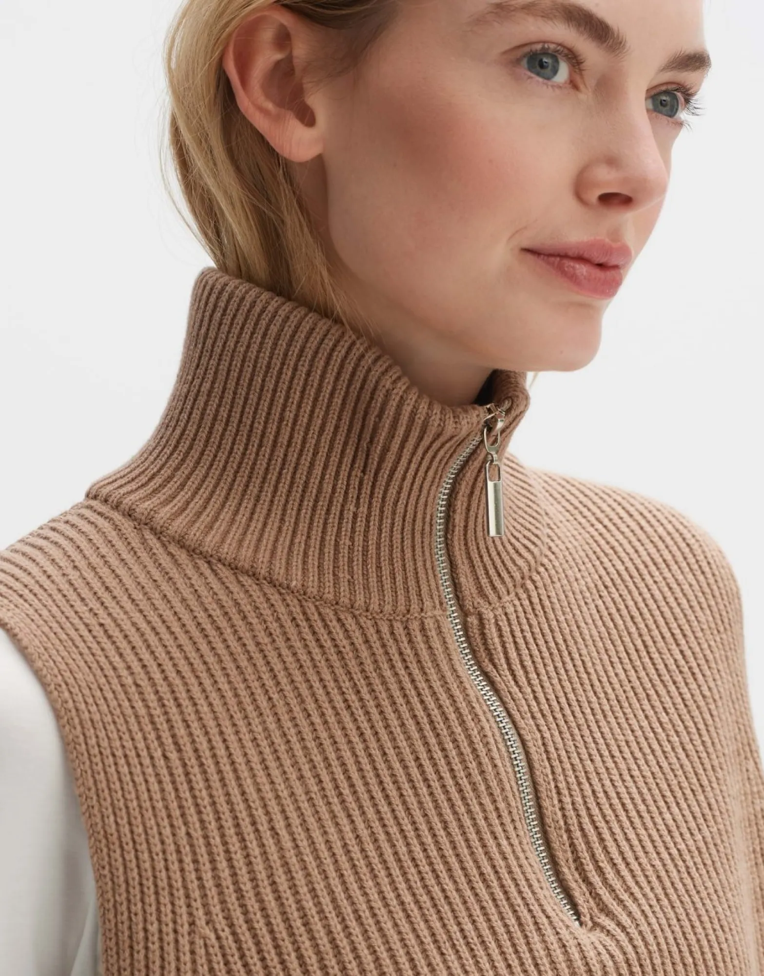 De Slipover Van Een Bci-Katoenmix Houdt Je Lekker Warm Met Zijn Grove Breisteek En Brede Troyer-Kraag. De Zijkant Is Open En Heeft Een Kleine Bar.