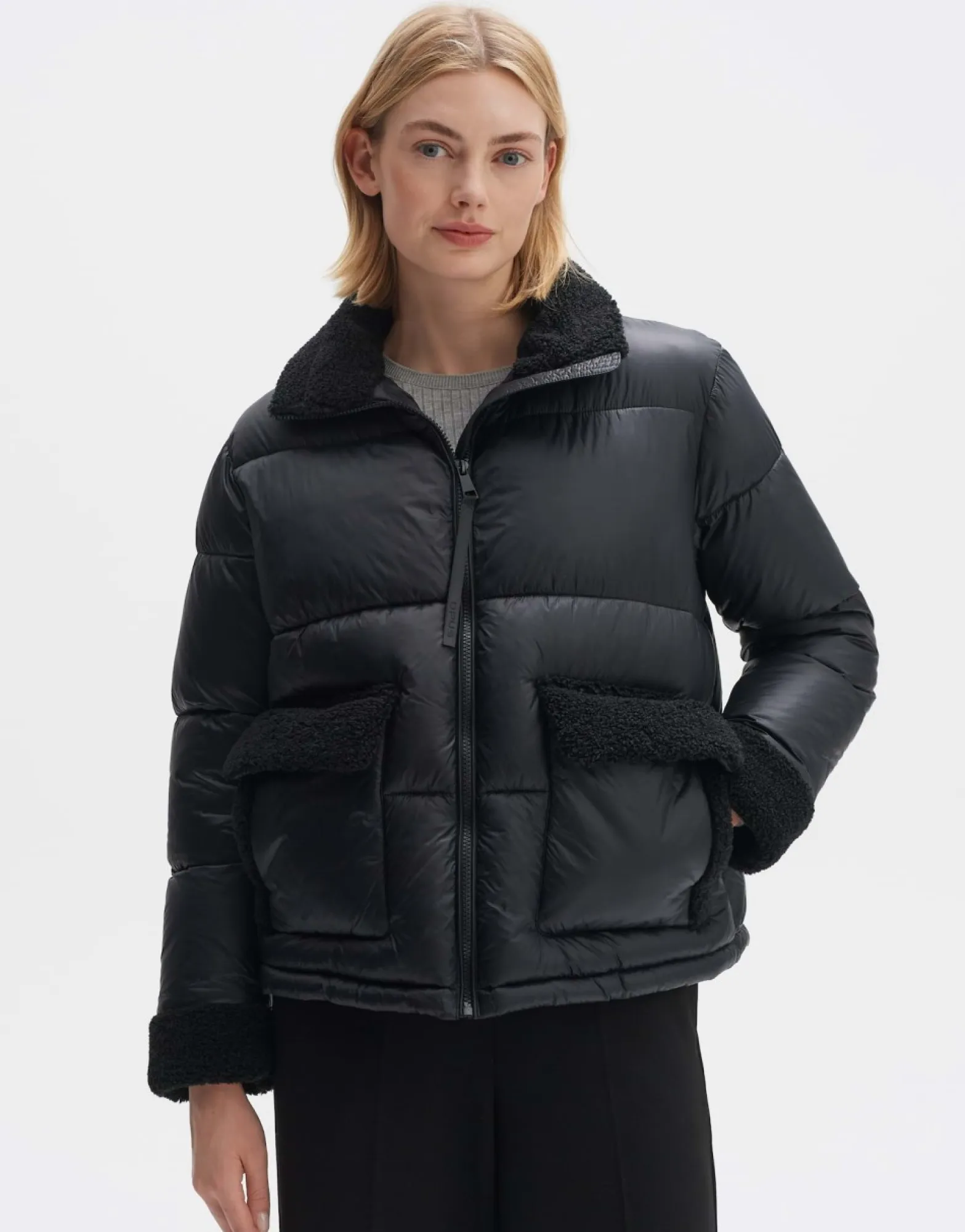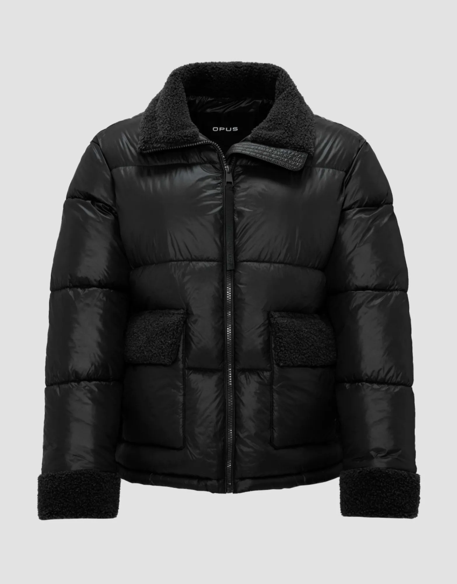 De Modieuze Korte Jas Van Gerecyclede Kwaliteit Speelt In Het Oppervlak Met Verschillende Materialen Van Zacht Nylon En Behaaglijk Teddybont. De Gewatteerde Vulling Combineert Alle Voordelen Van Een Klassieke Donsvulling Zonder Echt Dons Te Bevatten…