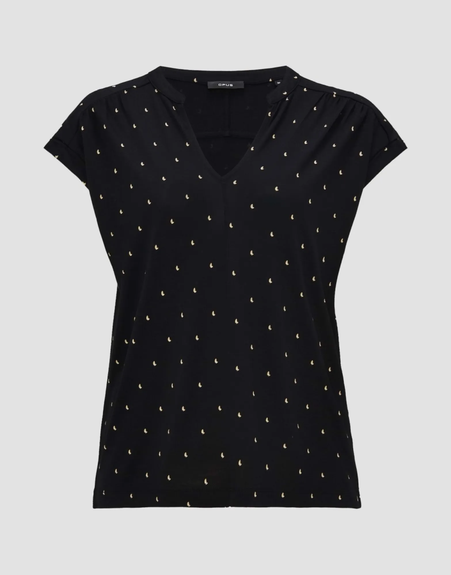 Gemaakt Van Een Hoogwaardige Ecovero™-Viscose, Speelt Dit Shirt Met Een Subtiele Polkadotprint Op Een Zachte Vloeiende Stof. De Opstaande Kraag Loopt Over In Een Vrouwelijke V-Hals.