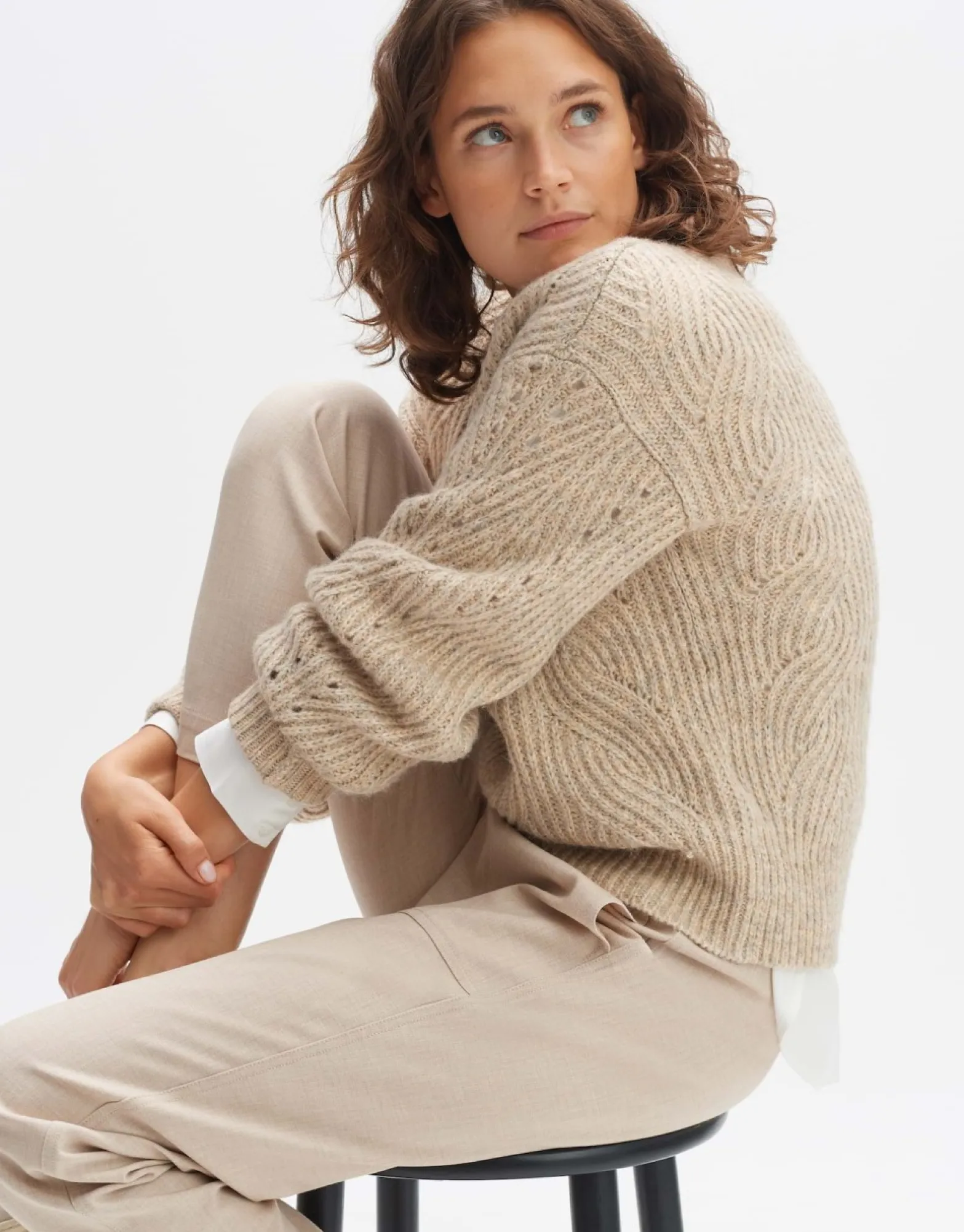 De Gebreide Trui Is Gemaakt Van Een Zachte Wolmix En Heeft Een Dynamisch Kabelpatroon Dat Een Geweldige Gebreide Look Oproept. De Volumineuze Mouwen En Ontspannen Pasvorm Zorgen Voor Een Absolute Feel-Good Factor.