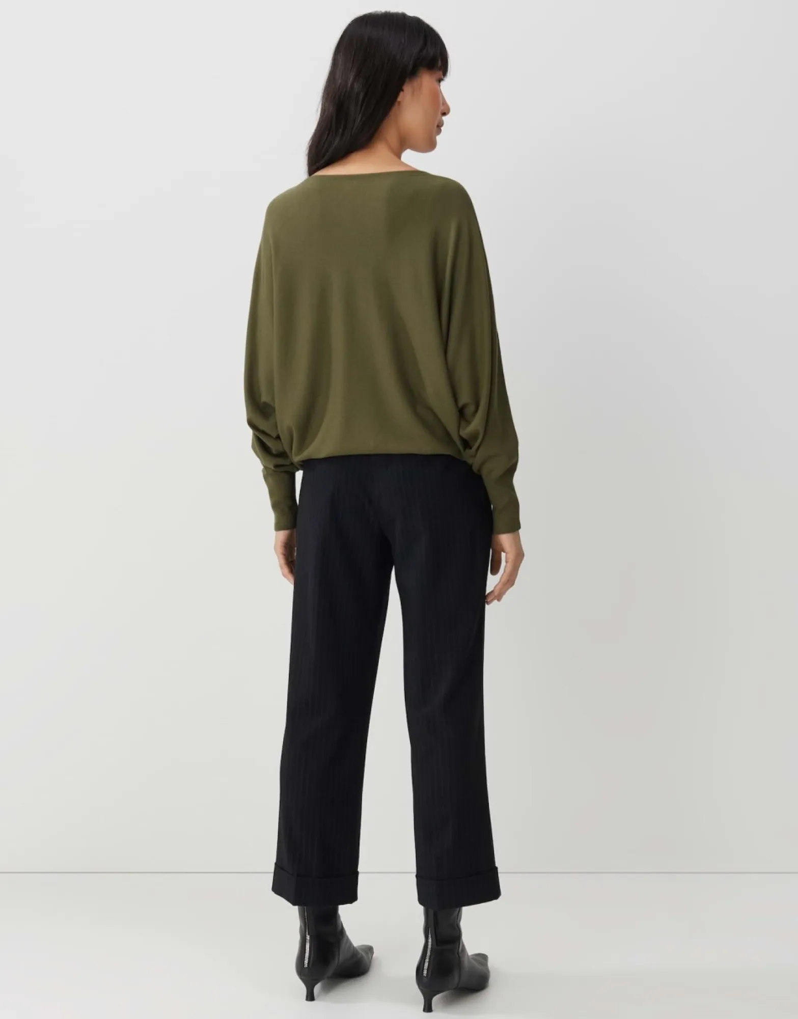 De Gebreide Trui Van Een Extreem Zachte Viscosemix Krijgt Een Modern O-Vormig Silhouet Door De Vleermuismouwen. De Manchetten Maken De Trui Af Met Smalle Ribboorden.