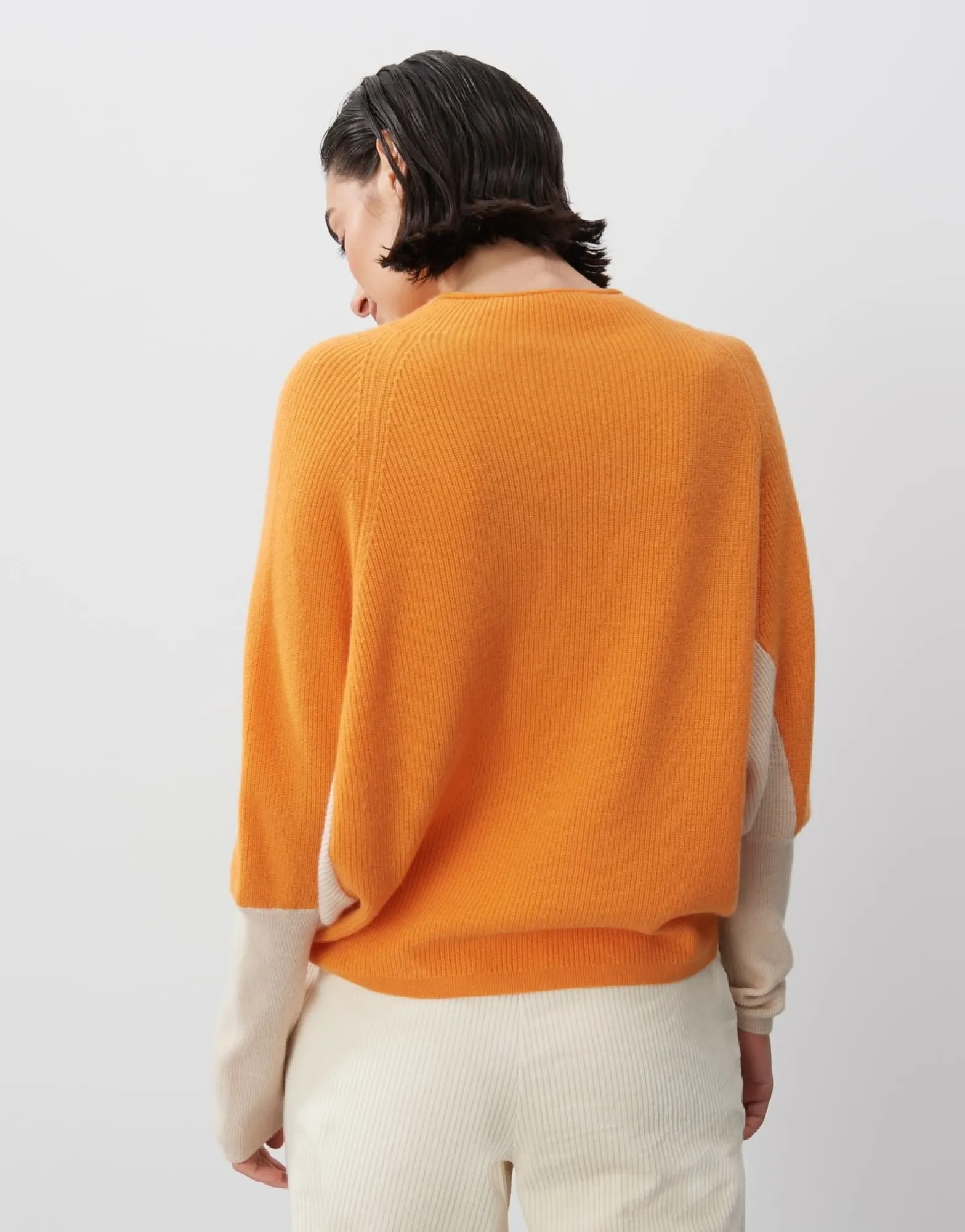 De Gebreide Trui In Een Zachte Kasjmiermix Speelt Een Geweldige Kleurblokkering Over Een Moderne O-Vorm. De Kleine Opstaande Kraag Is Bijzonder Flatterend En Rondt De Trui Elegant Af.