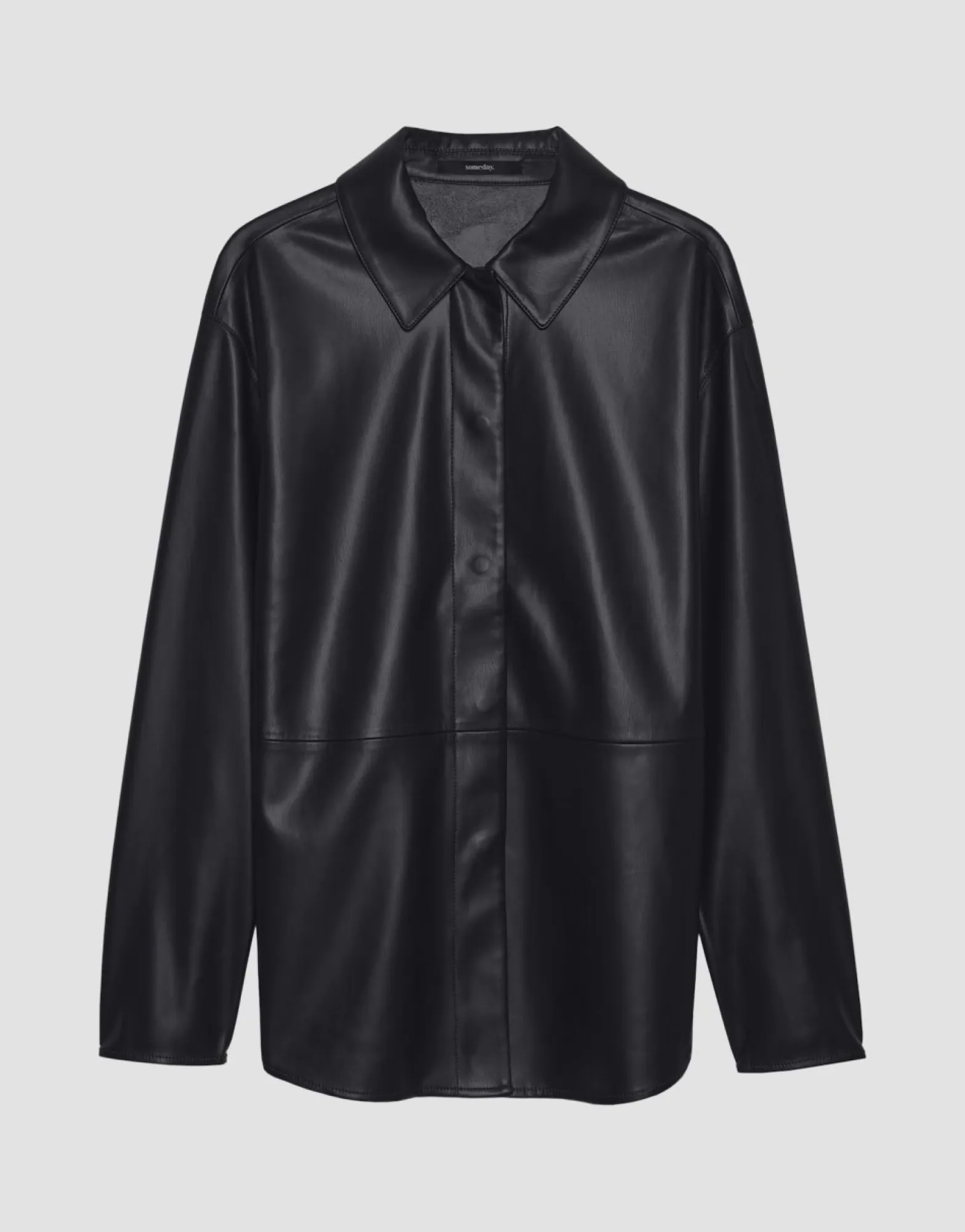 Het Overhemd In Coole Lederlook Is Gesneden In Een Casual Oversized Silhouet. De Deelnaden Geven De Overhemdblouse Een Authentieke Lederlook.