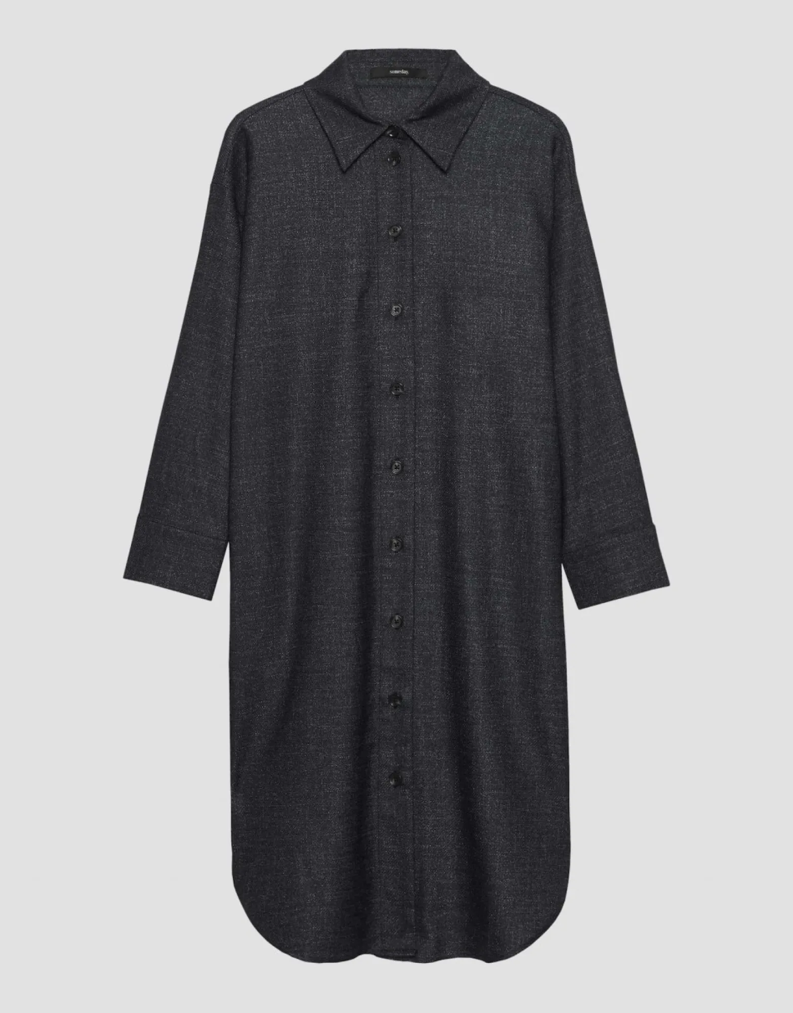 De Shirtdress In Klassieke Salt-And-Pepper Look Kan Als Jurk Of Als Lange Blouse Worden Gedragen. De Afgeronde Zoom Heeft Splitjes Aan De Zijkanten.