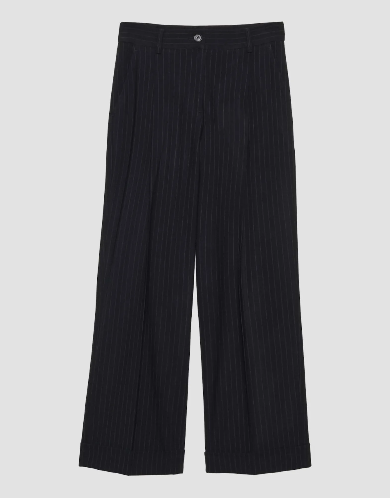 Deze Broek Van Zachte Stof Heeft Een Wijde, Rechte Pijp En Een Verkorte Lengte Met Een Beenplooi. De Krijtstreep Rekt Het Been Optisch Uit En Belooft Een Klassieke Zakelijke Look.