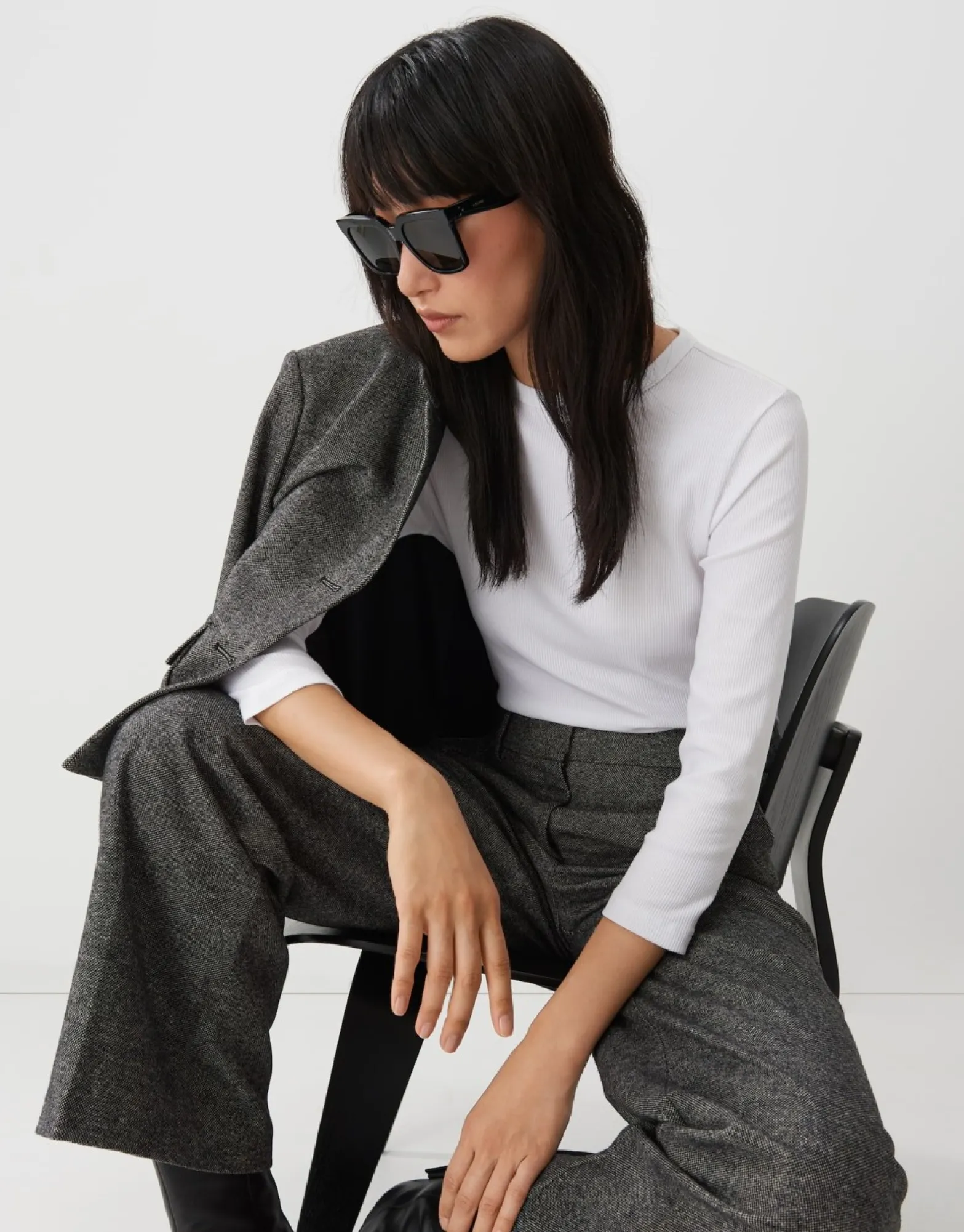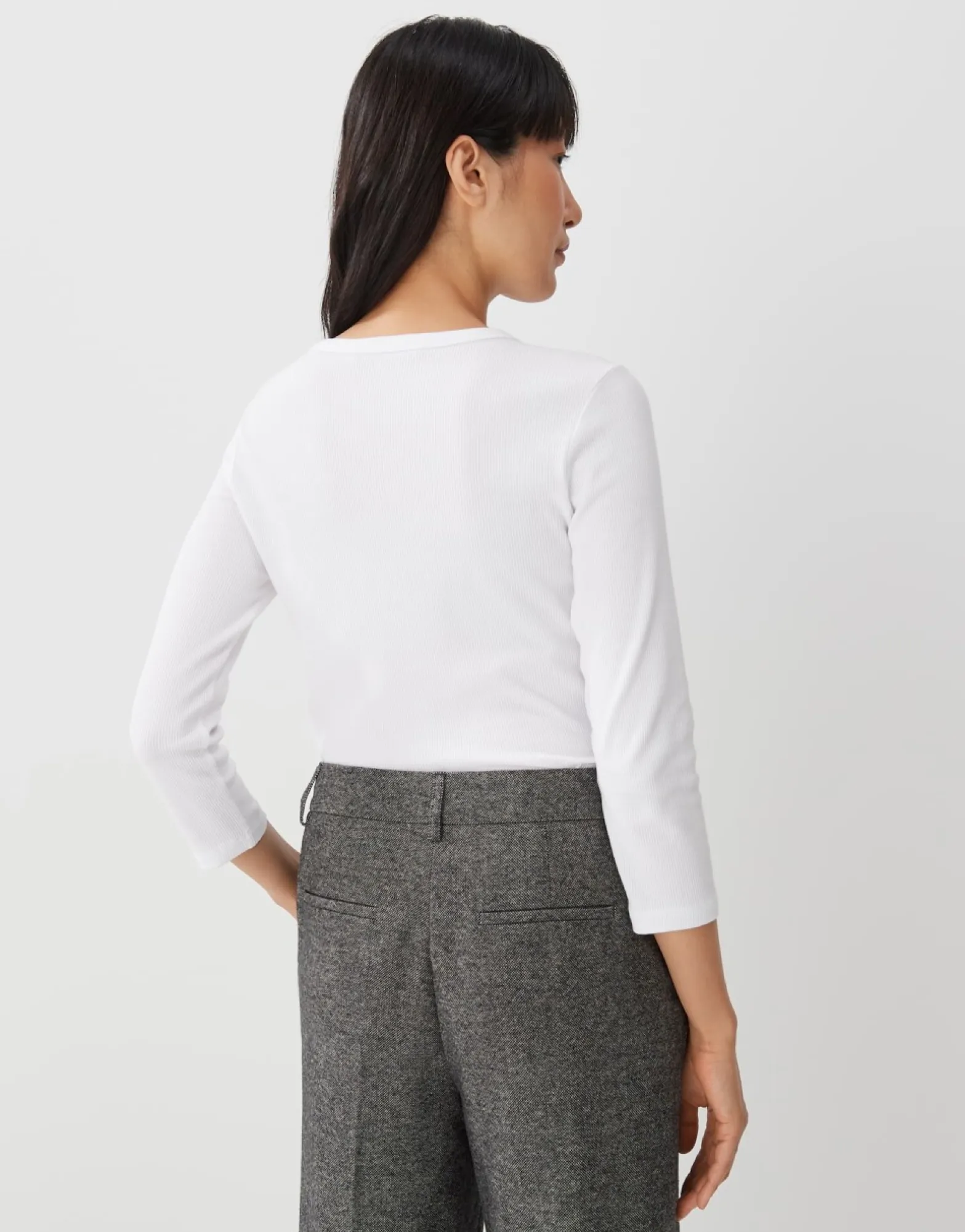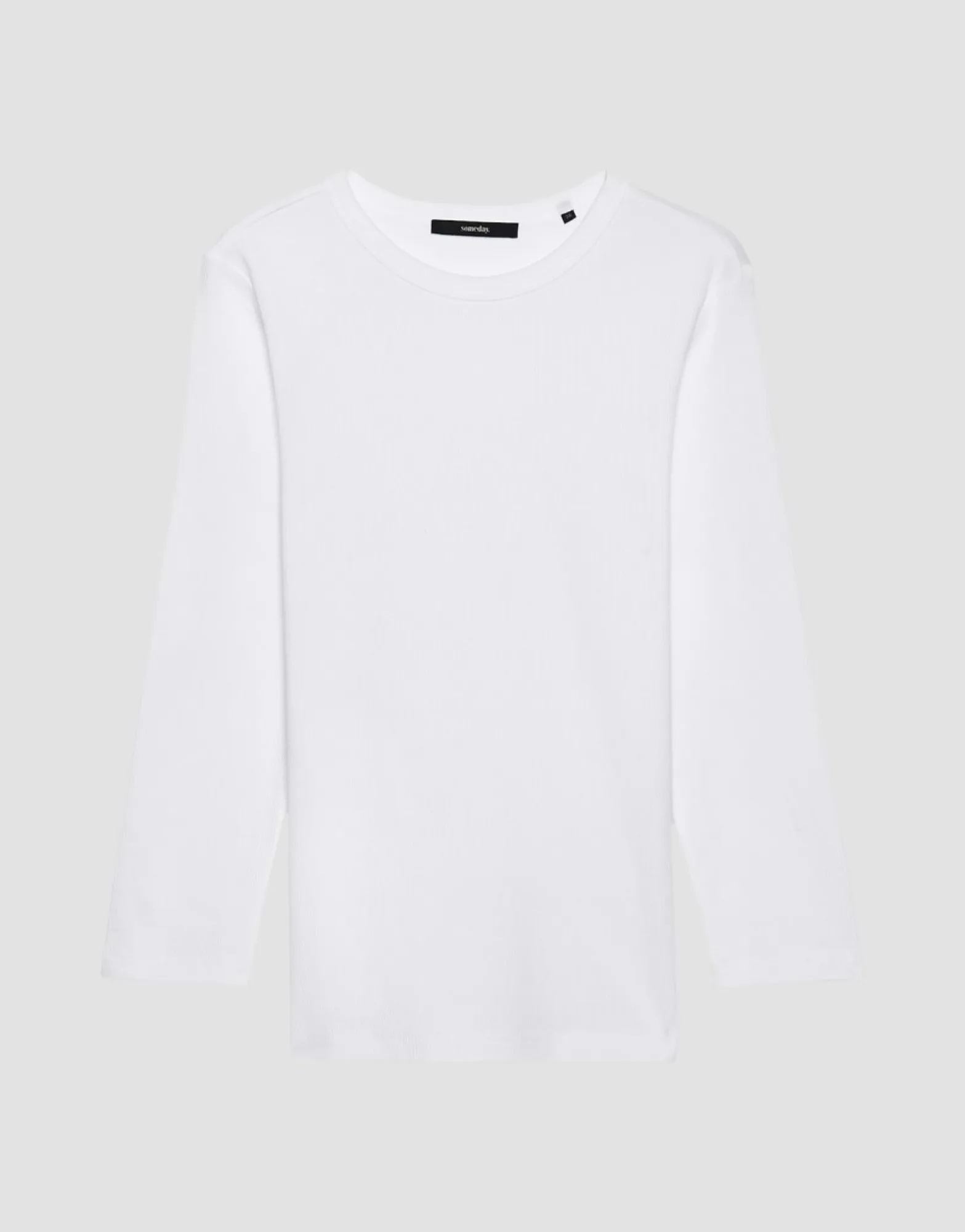 Het Shirt Gemaakt Van Een Hoogwaardige Bci Cotton Mix Leeft Van Een Fijne Rib Gespeeld Over Zachte Jersey. De Hoge Ronde Halslijn Oogt Elegant En Vrouwelijk Tegelijk.