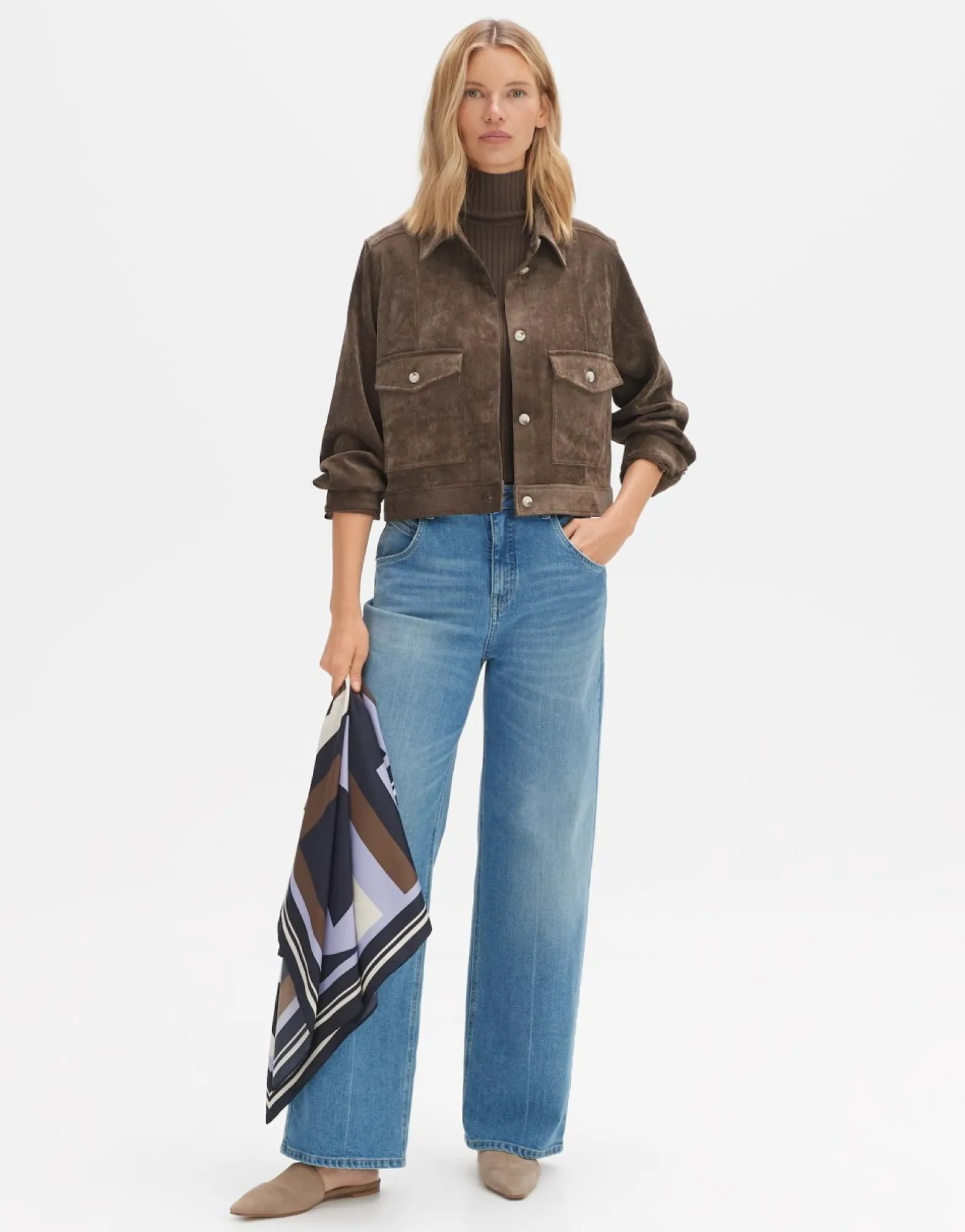 De Sjaal Van Gerecycled Polyester Heeft Mooie Grafische Elementen. De Vloeiende Stof Geeft De Sjaal Een Zomers Tintje En Maakt Hem Veelzijdig Te Combineren.