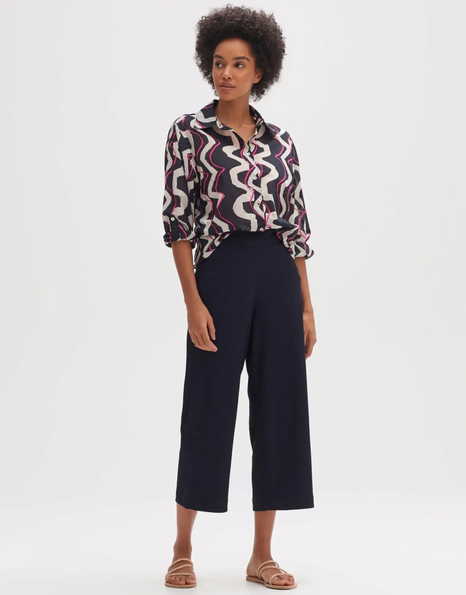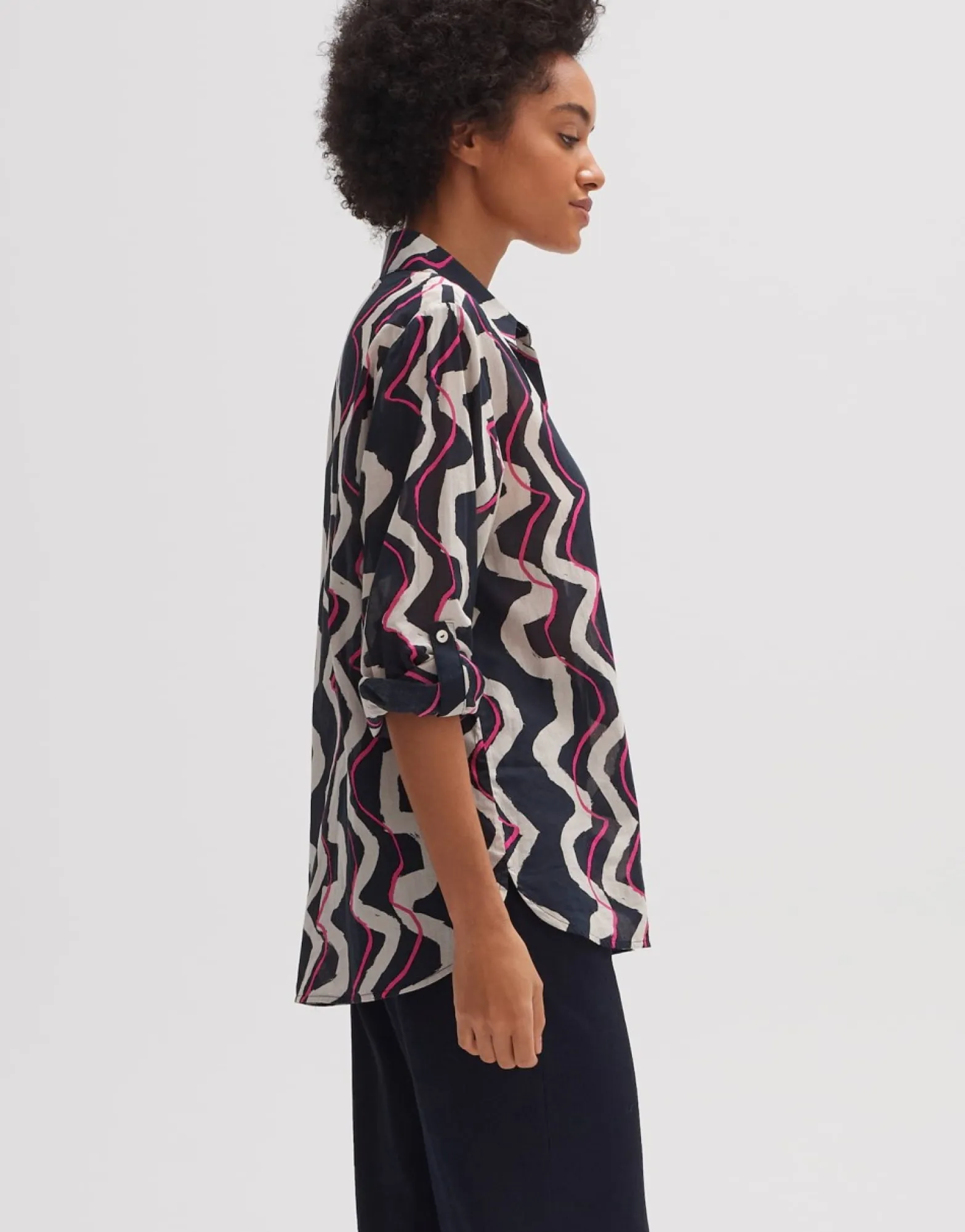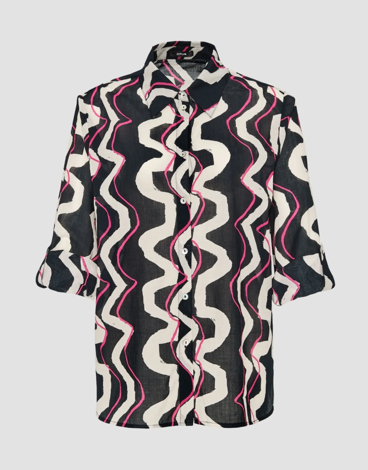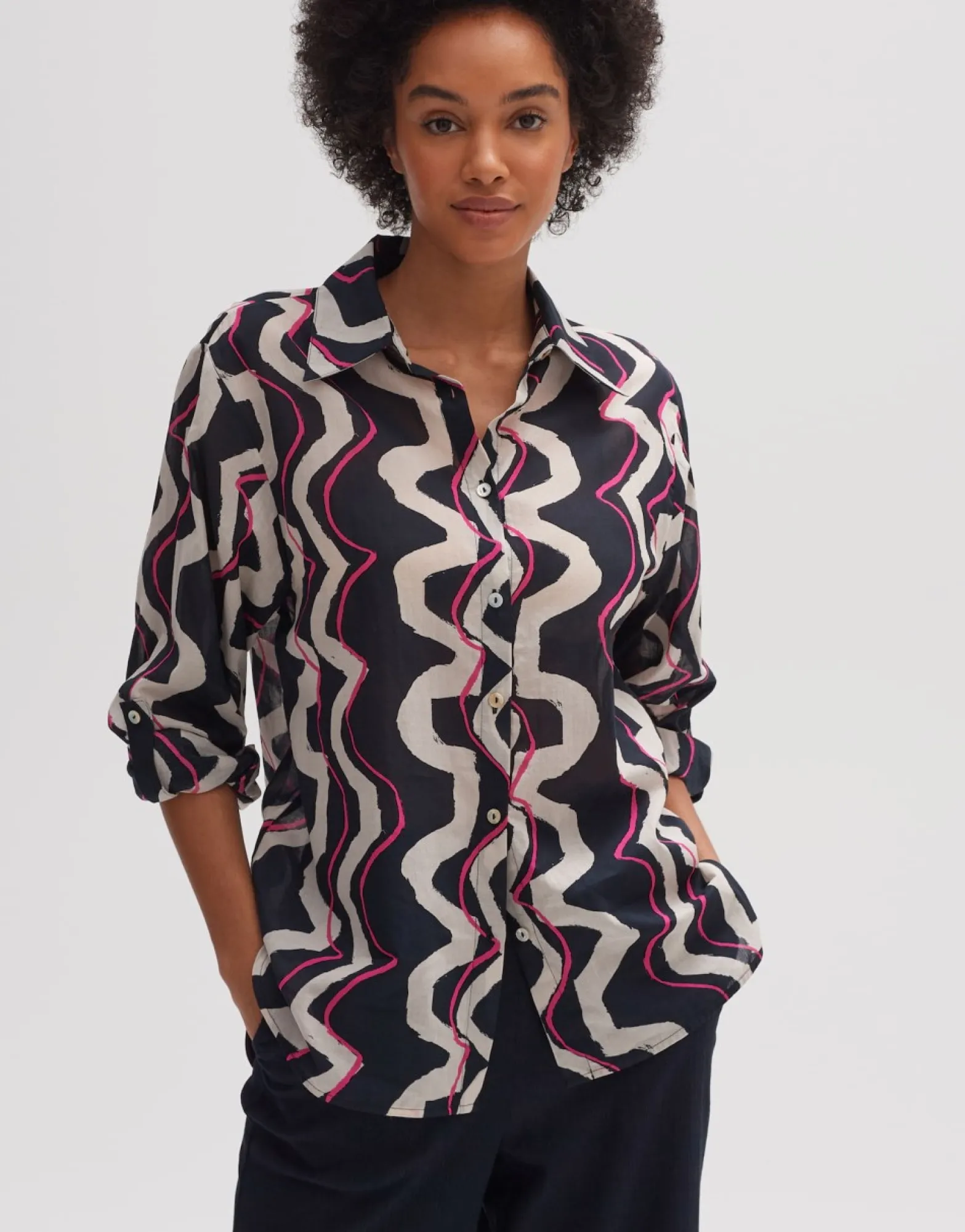 Deze Printblouse Van Hoogwaardig Bci-Katoen Speelt In Op Een Golvende Print Op Een Lichte En Luchtige Zomerse Stof. De Klassieke Overhemddetails Geven De Blouse Met Lange Mouwen Een Elegante Uitstraling.